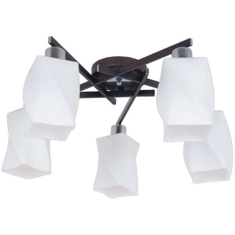Производитель светильника рекомендует для устройства 5 ламп накаливания с цоколем E27 и мощностью 75 W, что позволит осветить помещение площадью 20,8 кв.м. Габариты изделия: высота – 190 мм, диаметр – 510 мм.