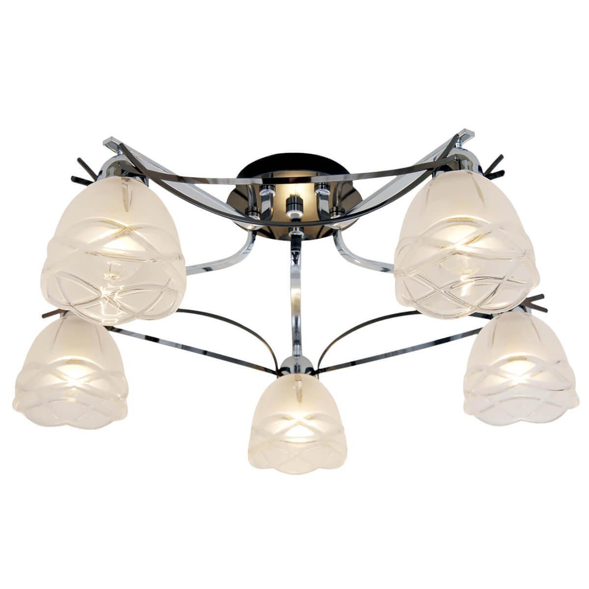 Потолочная люстра Citilux Сандра CL147151 от Датского бренда Citilux из коллекции Сандра будет удачно смотреться в спальни в стиле флористика. Светильник выполнен из стекла с плафонами в форме Флористика белого цвета.