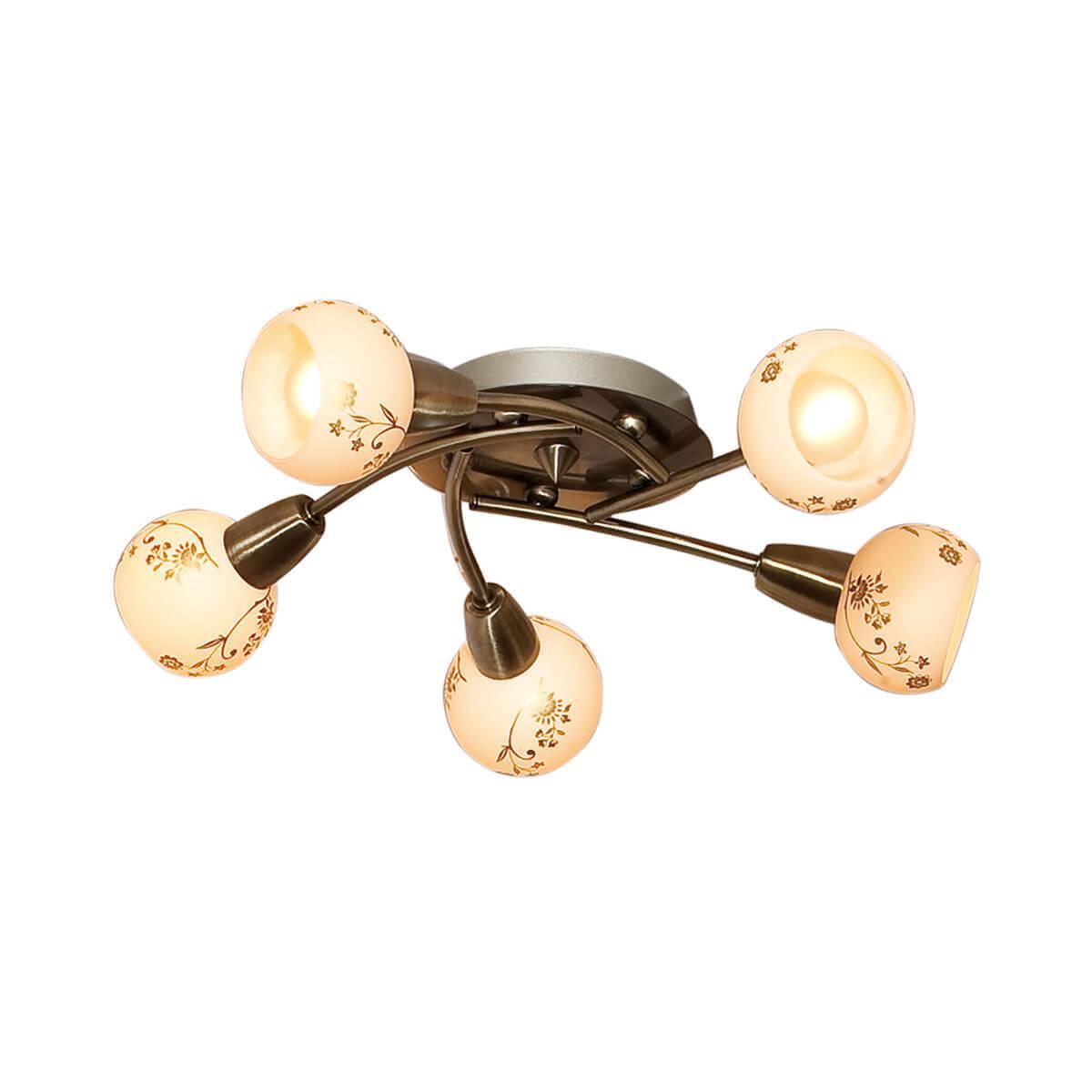 Производитель светильника рекомендует для устройства 5 ламп накаливания с цоколем E14 и мощностью 60 W, что позволит осветить помещение площадью 16,7 кв.м. Габариты изделия: высота – 170 мм, диаметр – 560 мм.