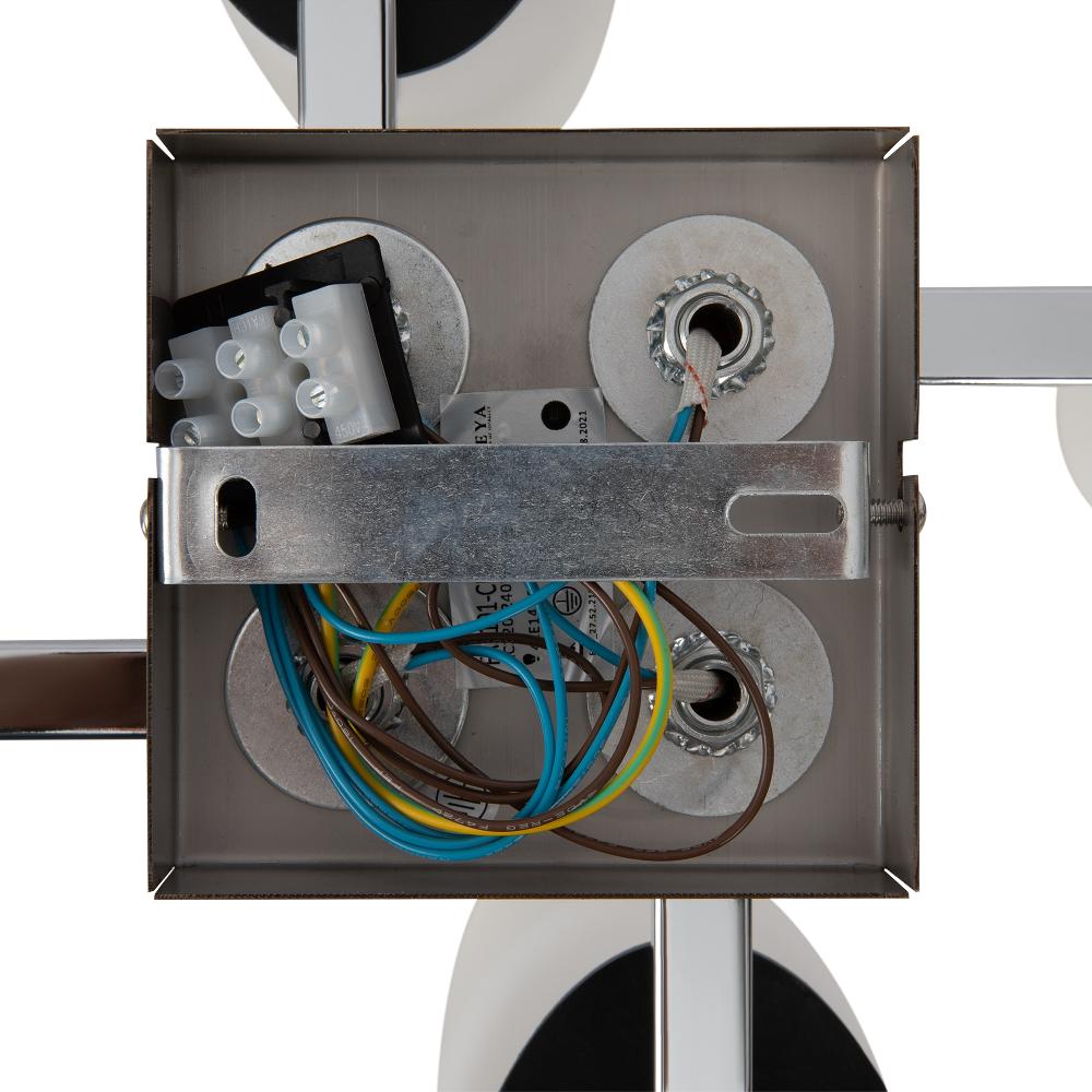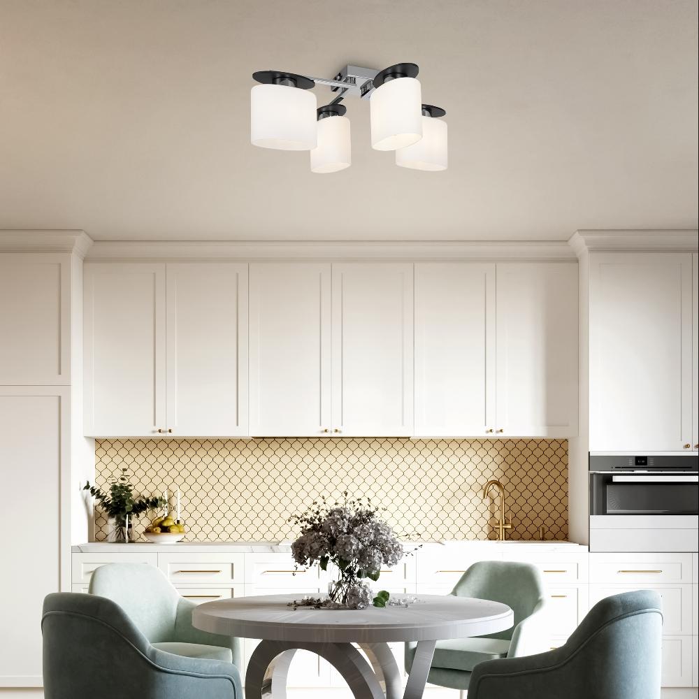 Производитель светильника рекомендует для устройства 4 лампы накаливания с цоколем E14 и мощностью 40 W, что позволит осветить помещение площадью 8,9 кв.м. Габариты изделия: высота – 200 мм, диаметр – 510 мм.