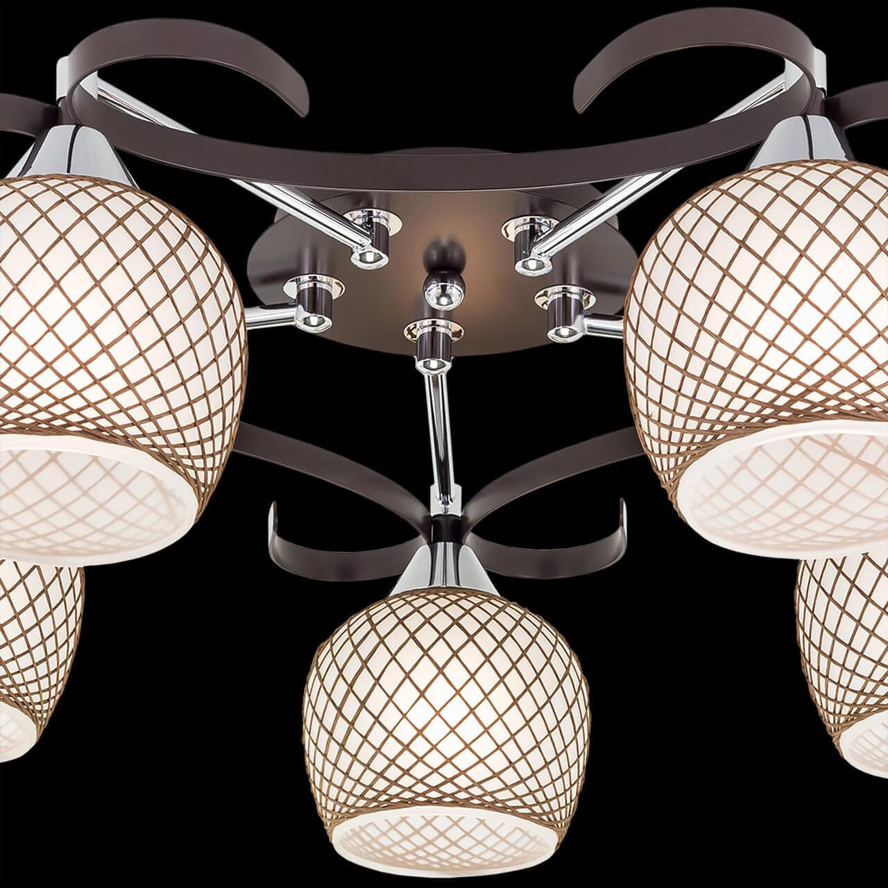 Производитель светильника рекомендует для устройства 5 ламп накаливания с цоколем E27 и мощностью 75 W, что позволит осветить помещение площадью 20,8 кв.м. Габариты изделия: высота – 220 мм, диаметр – мм.