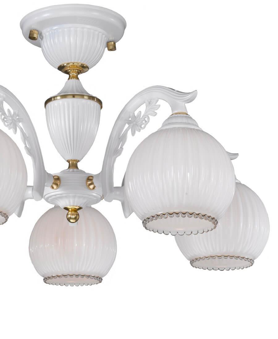 Потолочная люстра Reccagni Angelo PL 9600/5 от Итальянского бренда Reccagni Angelo из коллекции 9600 будет удачно смотреться в гостиной в классиком стиле. Светильник выполнен из стекла с плафонами в форме круга белого цвета.