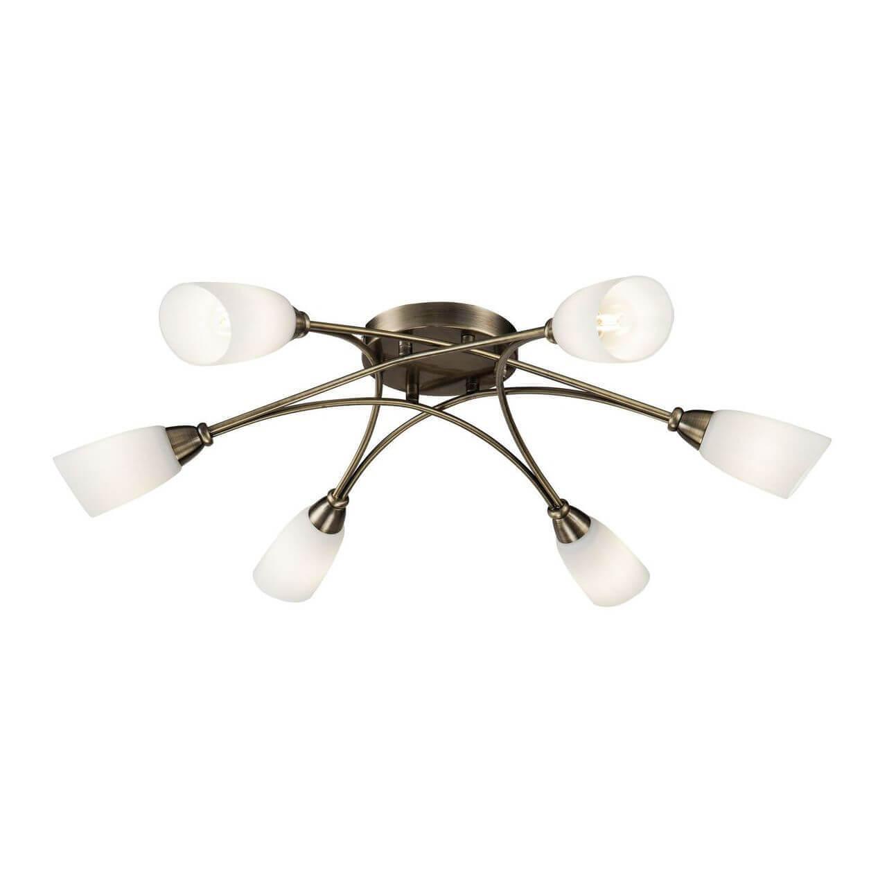Производитель светильника рекомендует для устройства 6 ламп накаливания с цоколем E14 и мощностью 40 W, что позволит осветить помещение площадью кв.м. Габариты изделия: высота – 165 мм, диаметр – 770 мм.