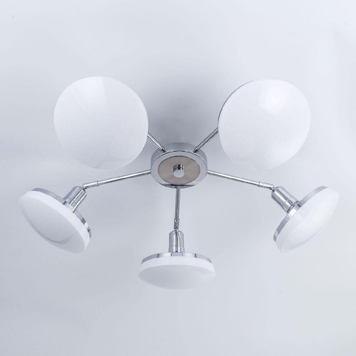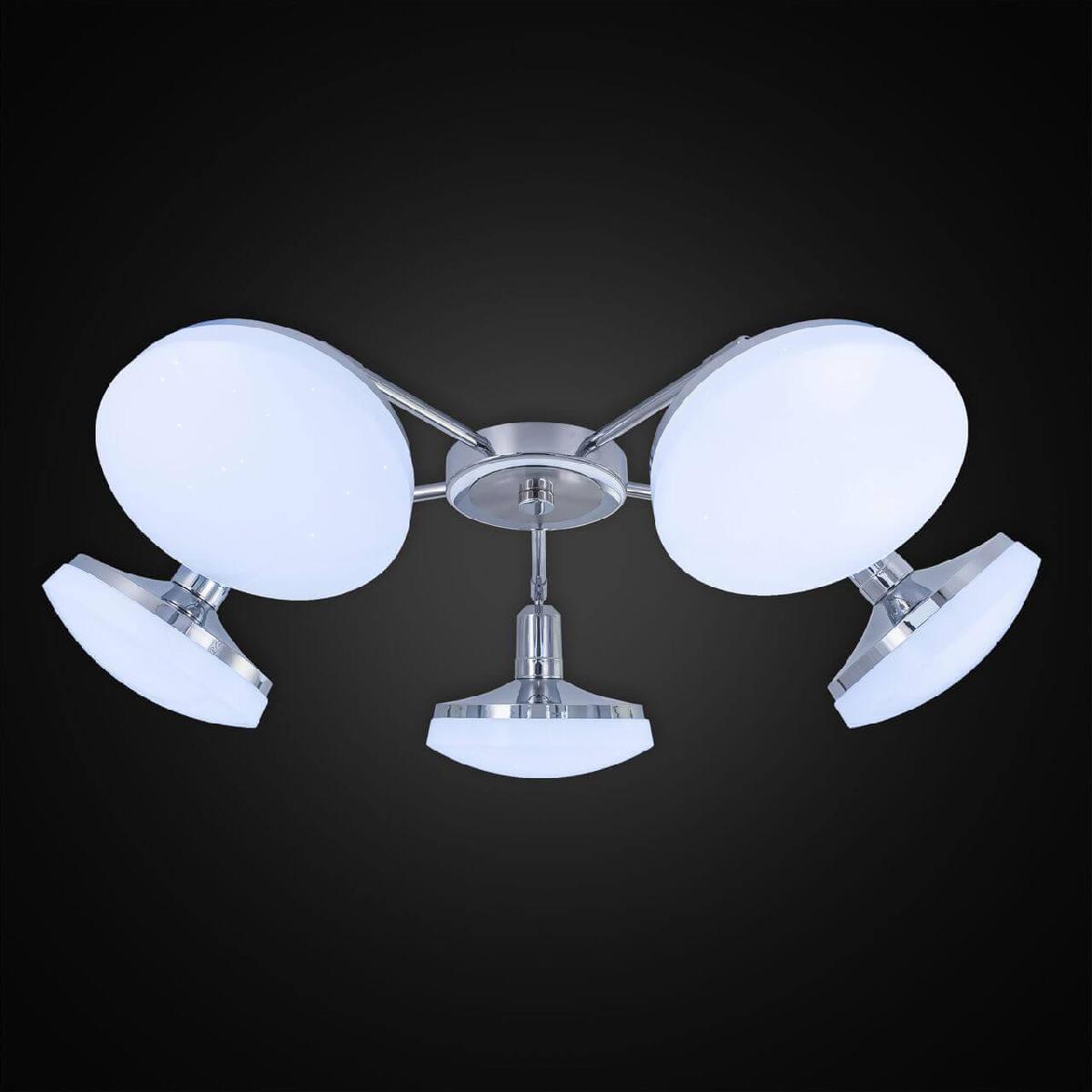 Производитель светильника рекомендует для устройства светодиодных ламп с цоколем LED и мощностью 12 W, что позволит осветить помещение площадью 21 кв.м. Габариты изделия: высота – 185 мм, диаметр – 880 мм.