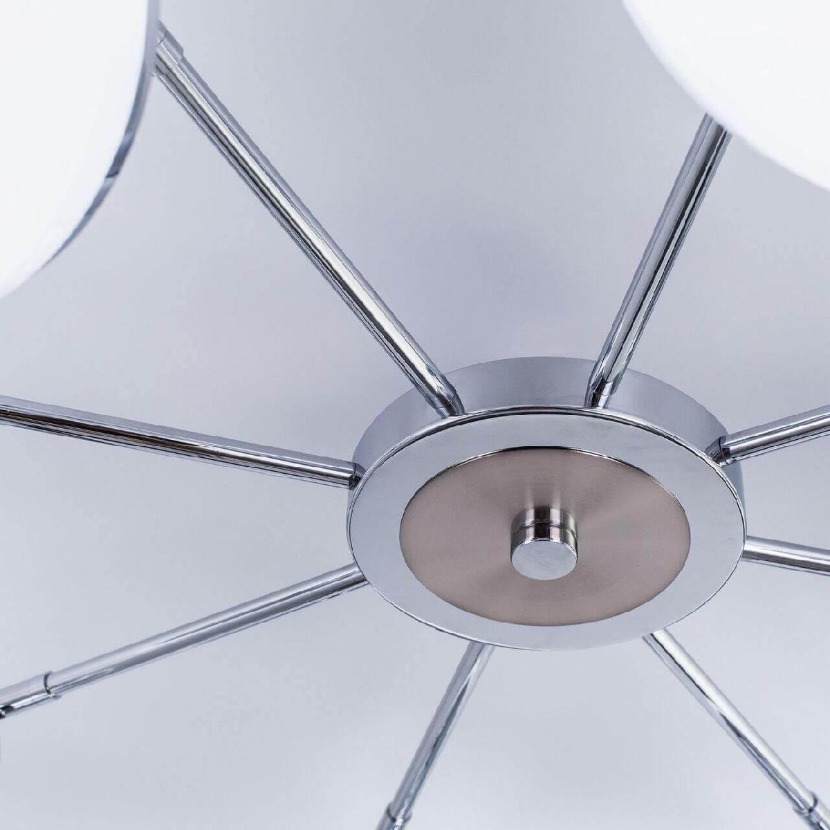 Производитель светильника рекомендует для устройства светодиодных ламп с цоколем LED и мощностью 12 W, что позволит осветить помещение площадью 33 кв.м. Габариты изделия: высота – 185 мм, диаметр – 1000 мм.