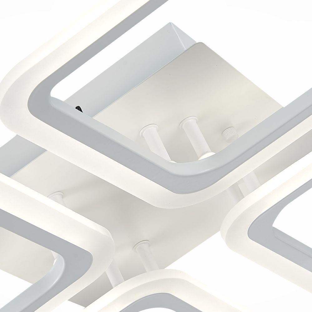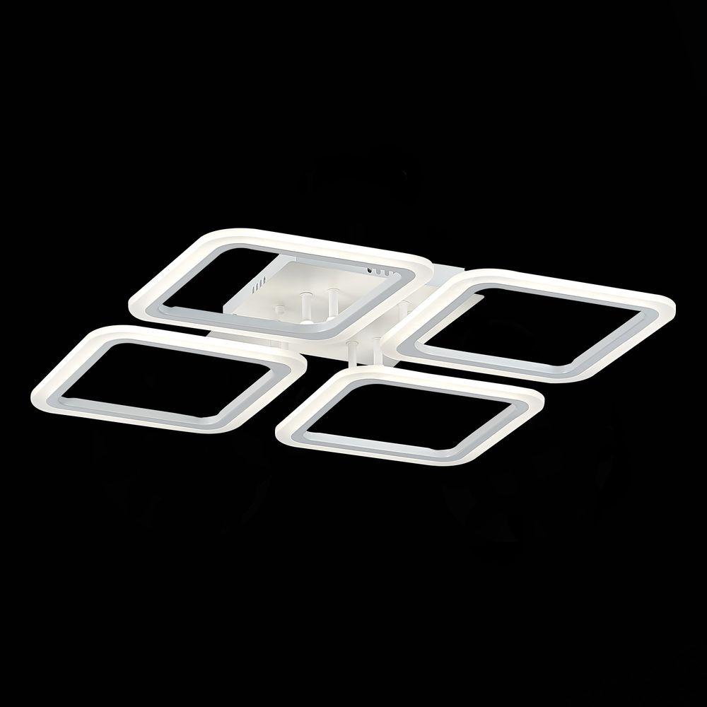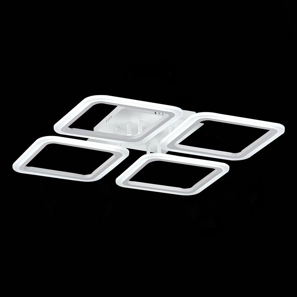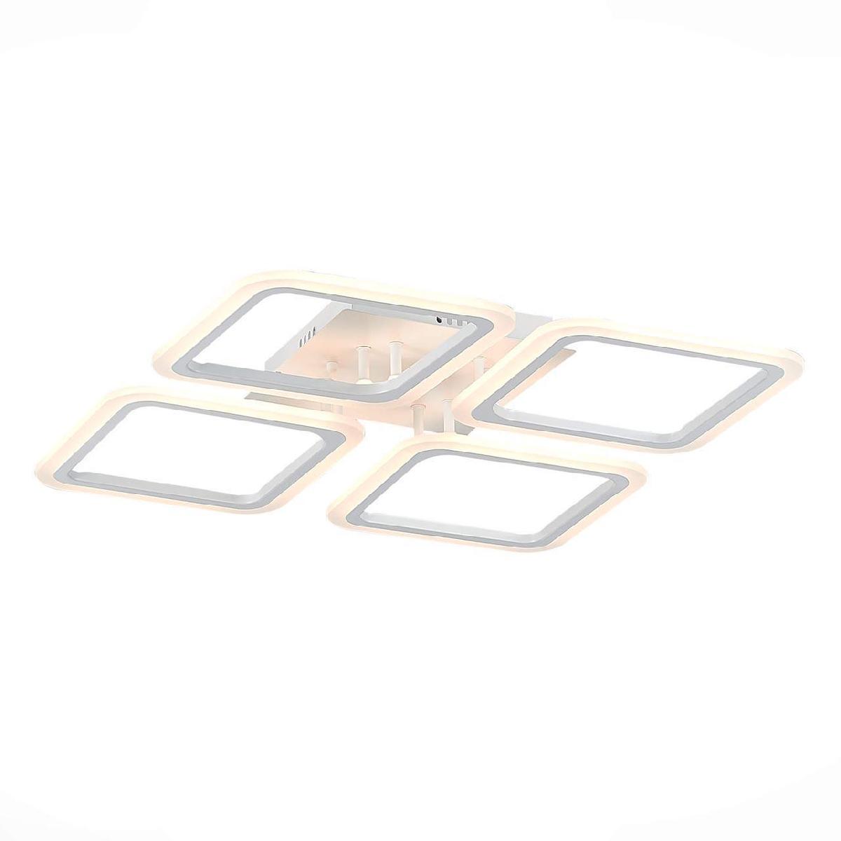Потолочная светодиодная люстра Evoled Qutro SLE200402-04 от Китайского бренда Evoled из коллекции Qutro будет удачно смотреться в гостиной в хай-тек стиле. Светильник выполнен из акрила с плафонами в форме квадрата белого цвета.