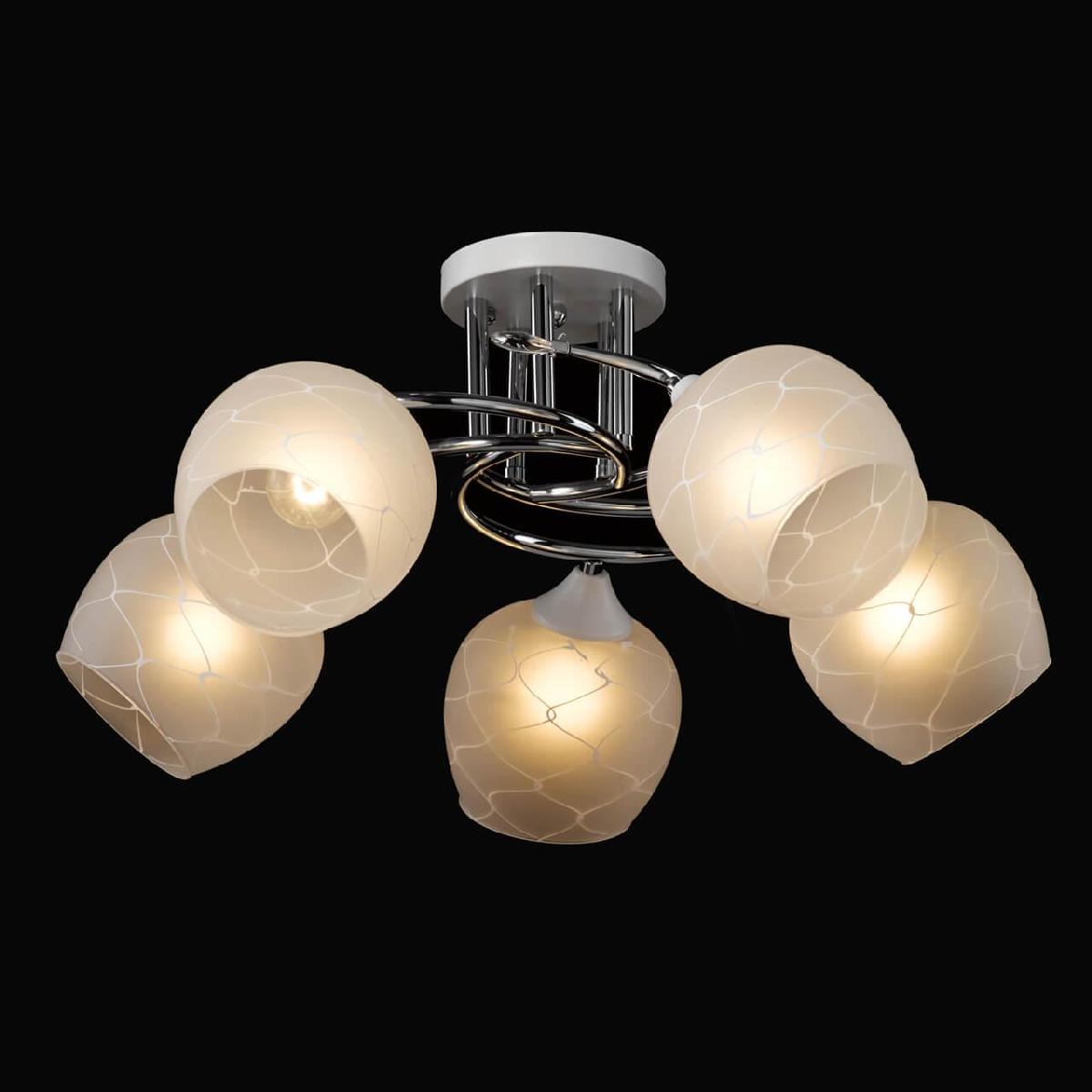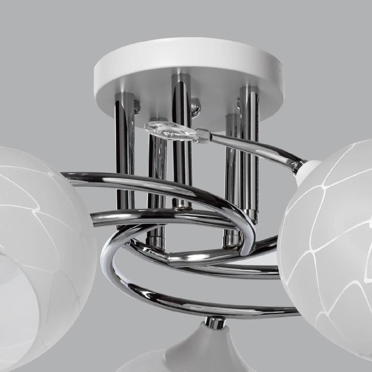 Производитель светильника рекомендует для устройства 5 ламп накаливания с цоколем E27 и мощностью 60 W, что позволит осветить помещение площадью 16 кв.м. Габариты изделия: высота – 230 мм, диаметр – 580 мм.