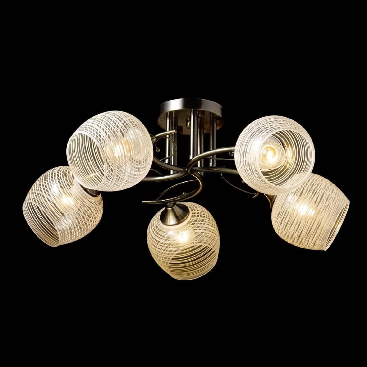 Производитель светильника рекомендует для устройства 5 ламп накаливания с цоколем E27 и мощностью 60 W, что позволит осветить помещение площадью 16,7 кв.м. Габариты изделия: высота – 230 мм, диаметр – 600 мм.