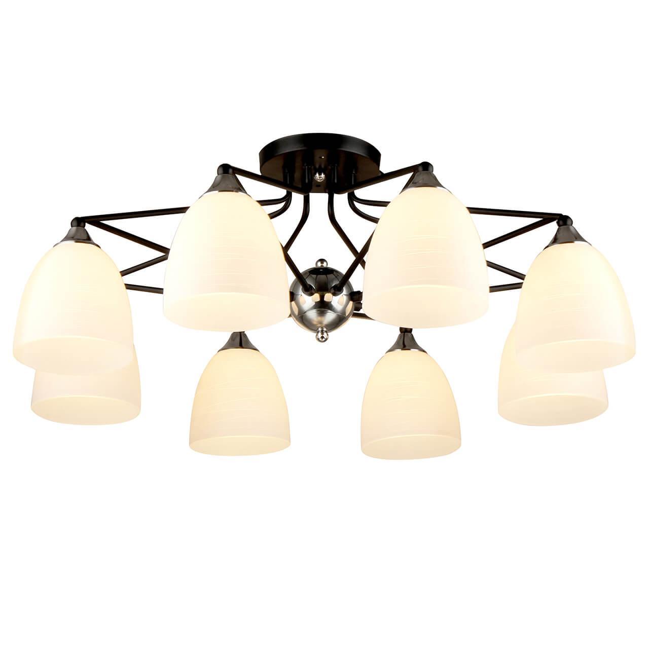 Производитель светильника рекомендует для устройства 8 ламп накаливания с цоколем E27 и мощностью 60 W, что позволит осветить помещение площадью 26,7 кв.м. Габариты изделия: высота – 285 мм, диаметр – 730 мм.
