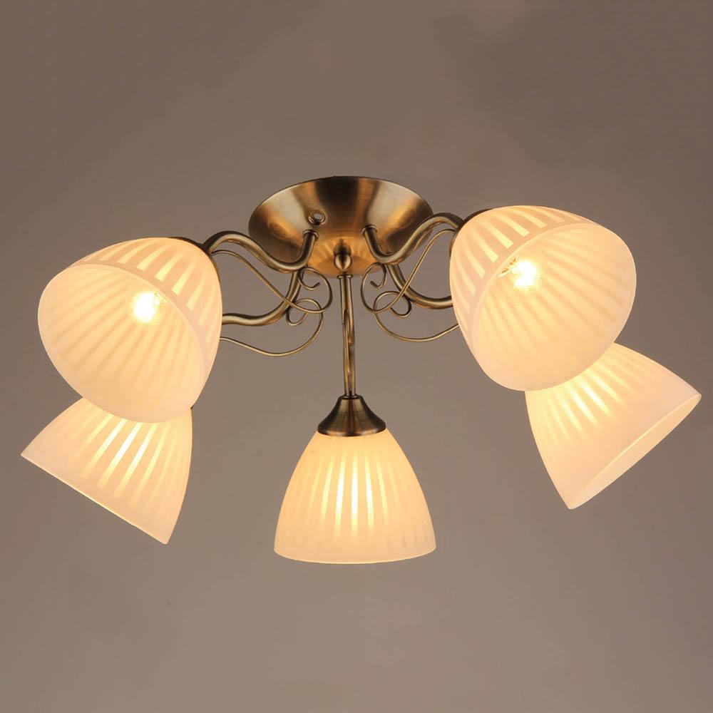 Производитель светильника рекомендует для устройства 5 ламп накаливания с цоколем E27 и мощностью 60 W, что позволит осветить помещение площадью 16,7 кв.м. Габариты изделия: высота – 250 мм, диаметр – 660 мм.