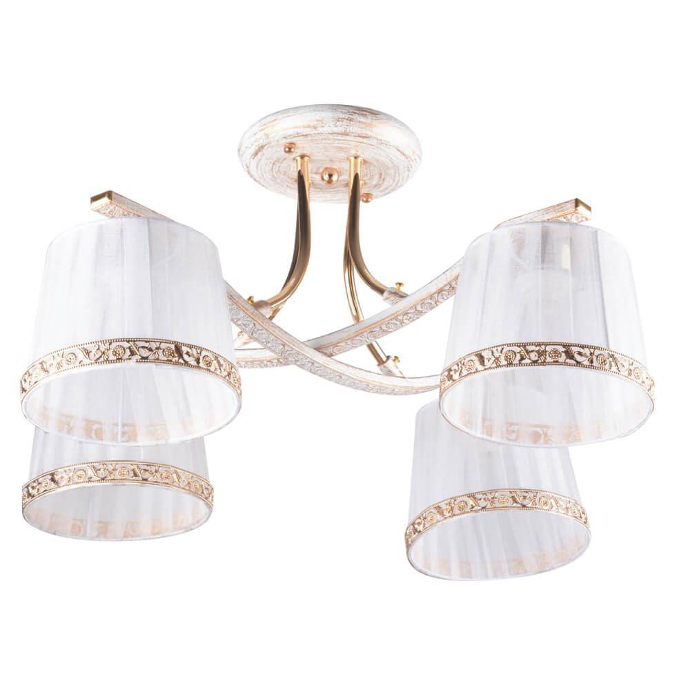 Потолочная люстра Hiper Simona H016-4 от Китайского бренда Hiper из коллекции Simona будет удачно смотреться в спальни в стиле прованс. Светильник выполнен из ткани с плафонами в форме конуса белого цвета.