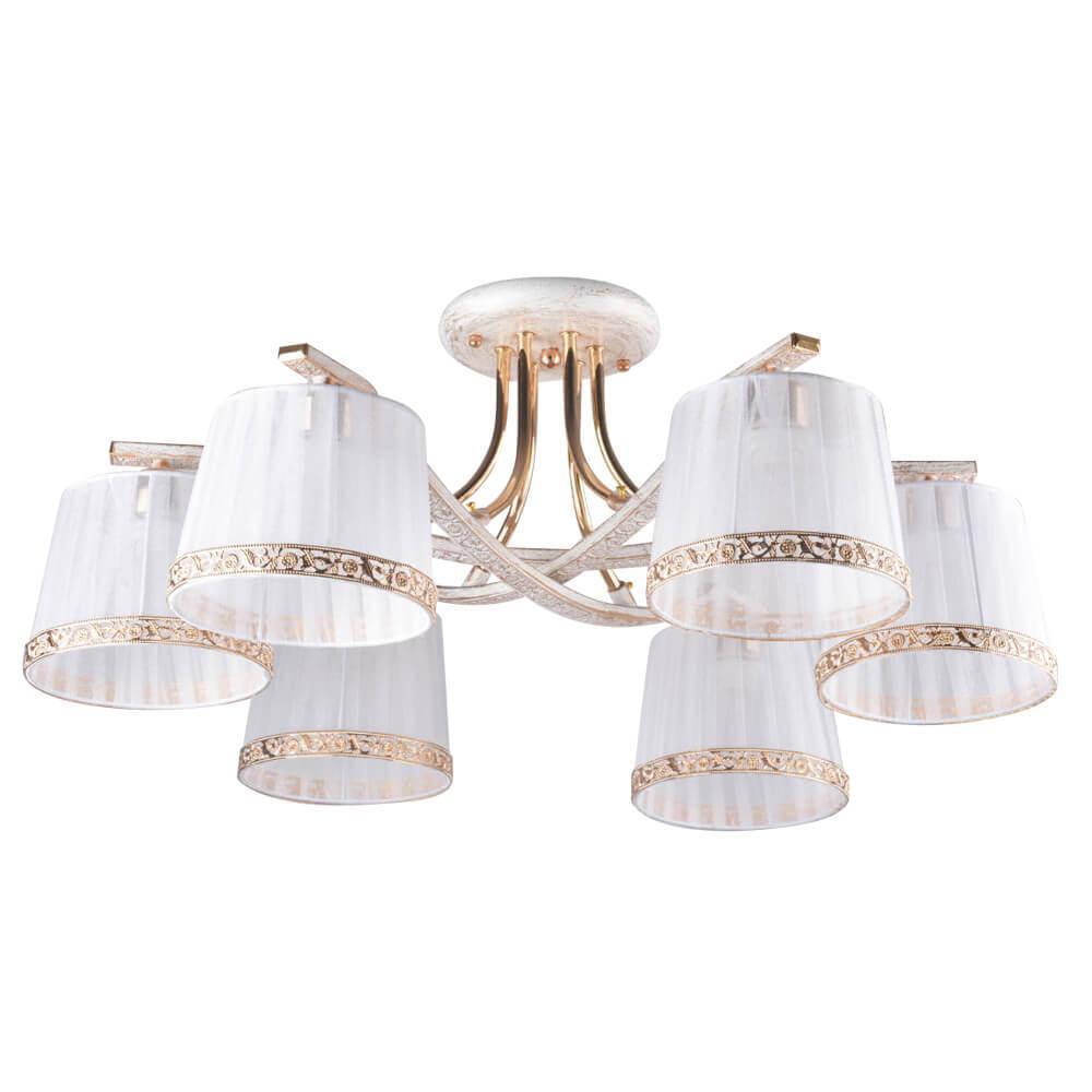Потолочная люстра Hiper Simona H016-6 от Китайского бренда Hiper из коллекции Simona будет удачно смотреться в гостиной в стиле прованс. Светильник выполнен из ткани с плафонами в форме конуса белого цвета.