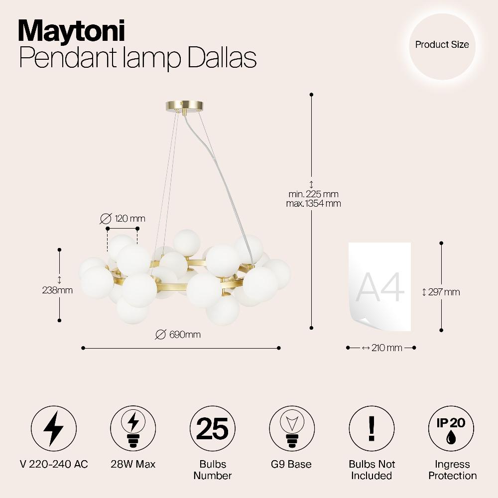 Подвесной светильник Maytoni MOD545PL-25BS от бренда из коллекции Modern ) подходит для установки в . Лампа из основы - и плафонами из стекла в форме - белого цвета.