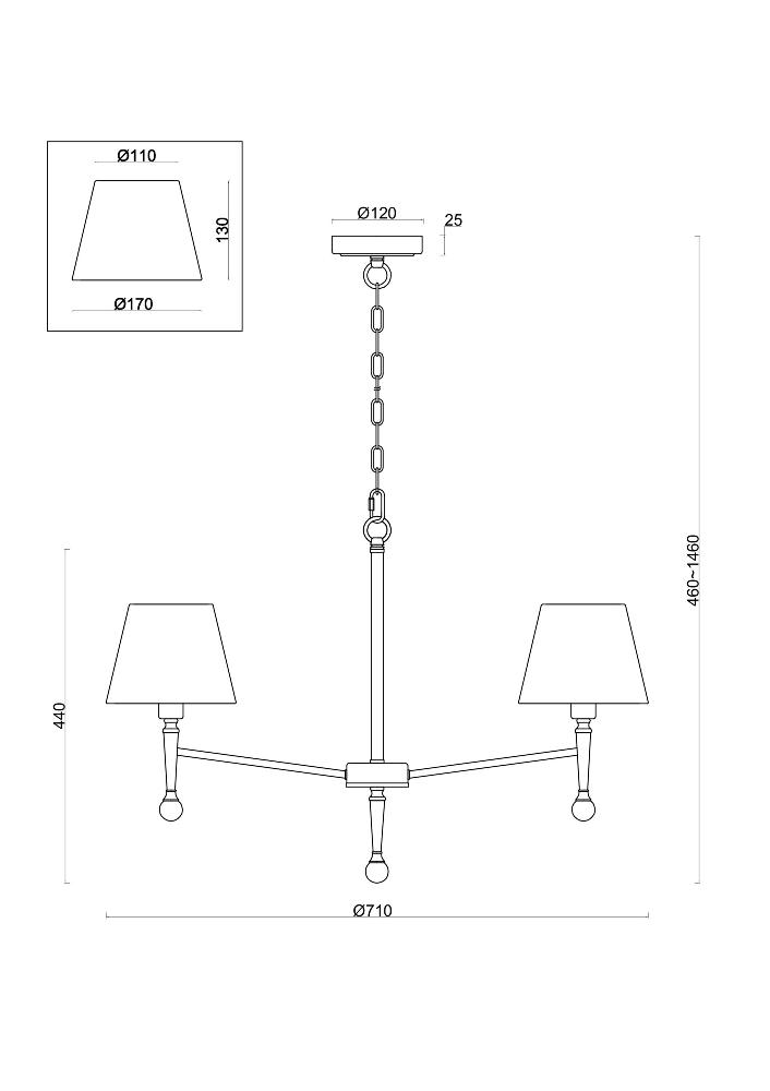 Для лампы необходима 5 W и цоколем . Лампы приобретаются отдельно. Габариты изделия: высота – 1460 мм, диаметр – 710 мм.