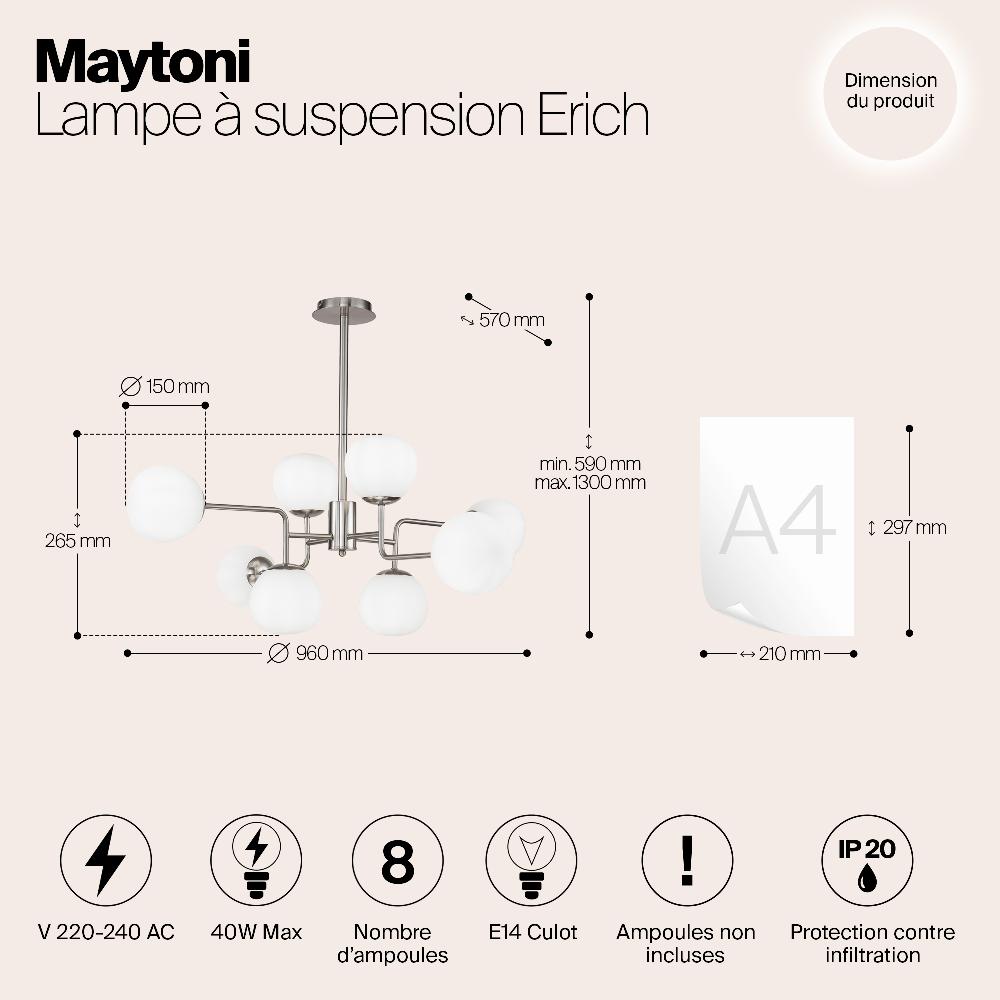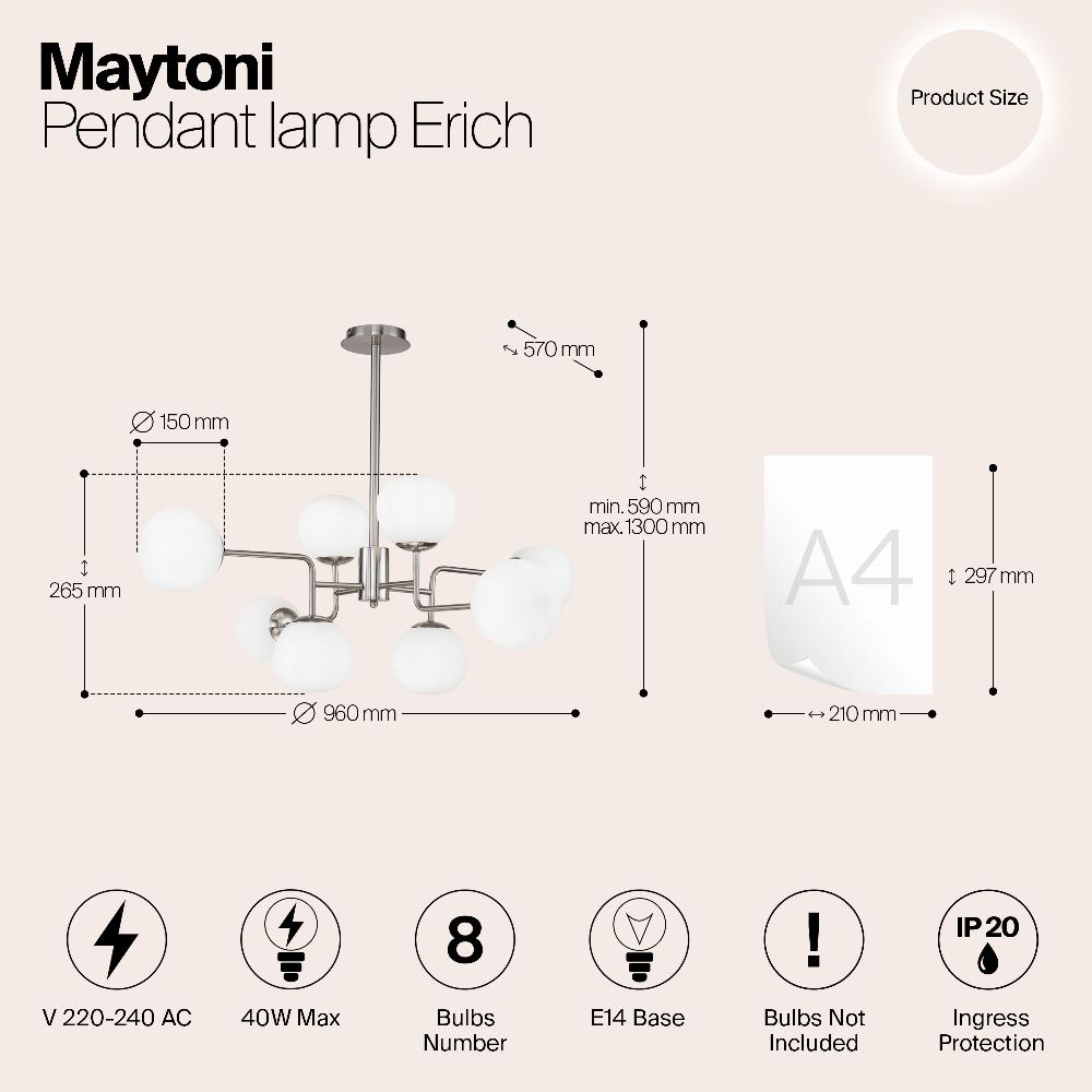 Подвесной светильник Maytoni MOD221-PL-08-N от бренда из коллекции Modern ) подходит для установки в . Лампа из основы - и плафонами из стекла в форме - белого цвета.
