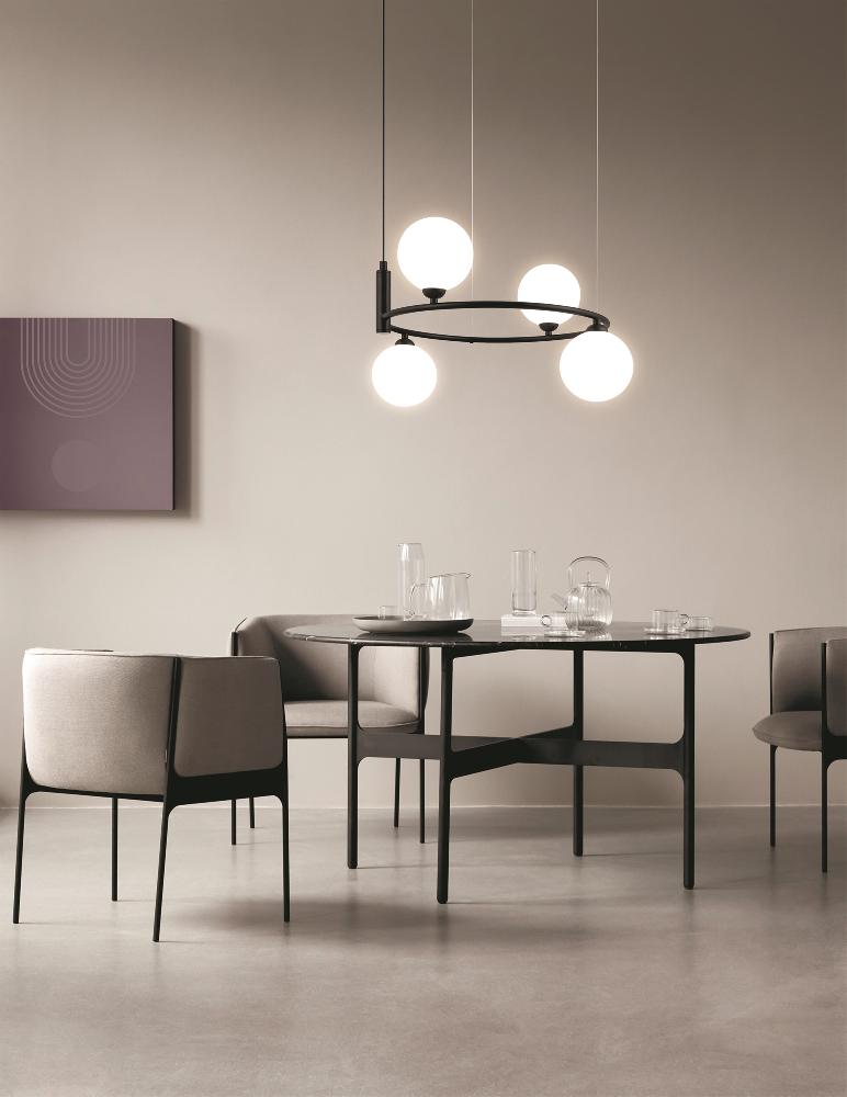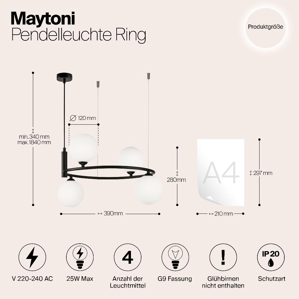Подвесной светильник Maytoni MOD013PL-04B от бренда из коллекции Modern ) подходит для установки в . Лампа из основы - и плафонами из стекла в форме - белого цвета.