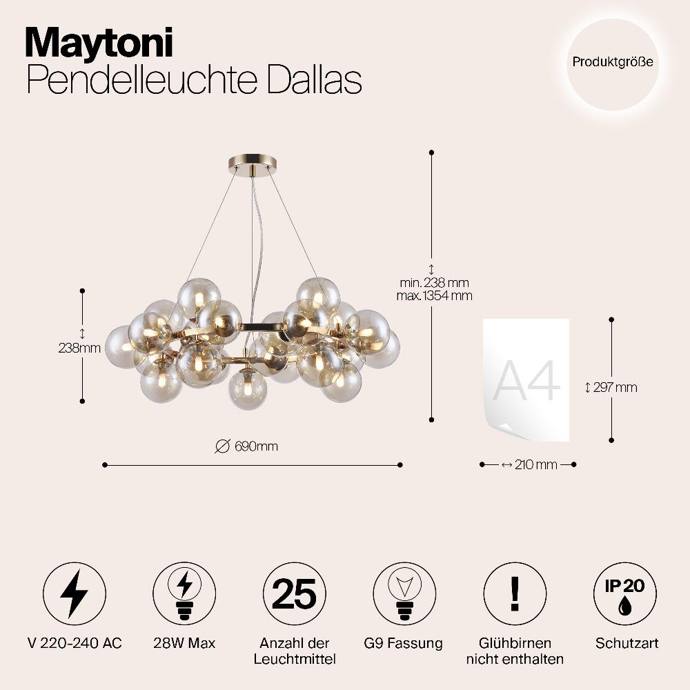Подвесной светильник Maytoni MOD548PL-25G от бренда из коллекции Modern ) подходит для установки в . Лампа из основы - и плафонами из стекла в форме - янтарного цвета.
