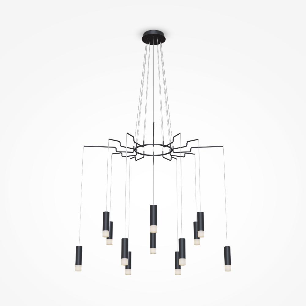 Подвесной светильник Maytoni MOD035PL-12B от бренда из коллекции Modern ) подходит для установки в . Лампа из основы - и плафонами из акрила в форме цилиндра - .