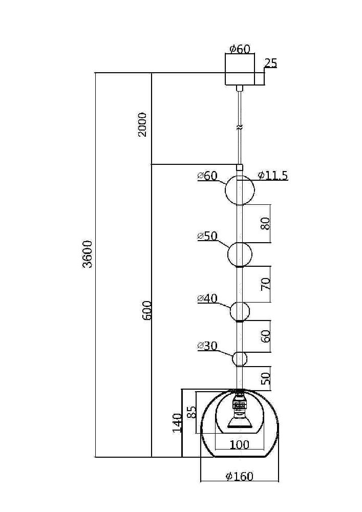 Для лампы необходима 1 W и цоколем . Лампы приобретаются отдельно. Габариты изделия: высота – 3625 мм, диаметр – 160 мм.