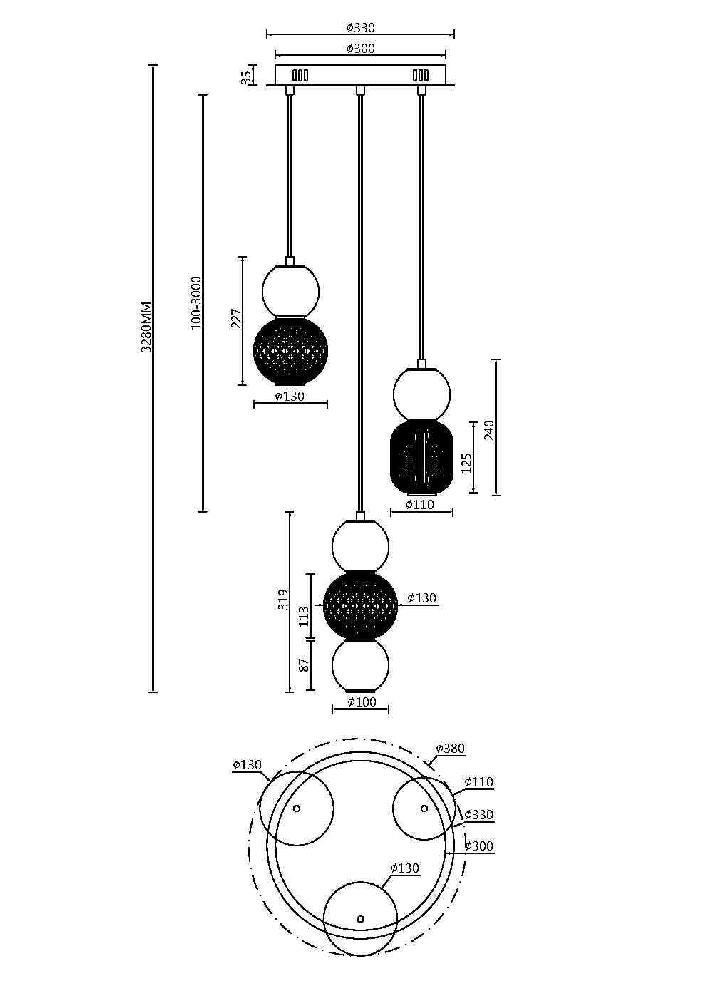 Для лампы необходима W и цоколем . Лампы приобретаются отдельно. Габариты изделия: высота – 3354 мм, диаметр – 380 мм.