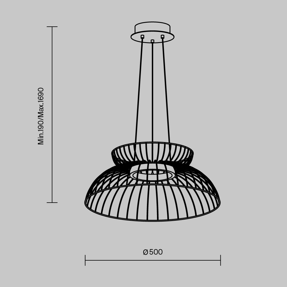 Для лампы необходима 6 W и цоколем . Лампы приобретаются отдельно. Габариты изделия: высота – 1690 мм, диаметр – 500 мм.