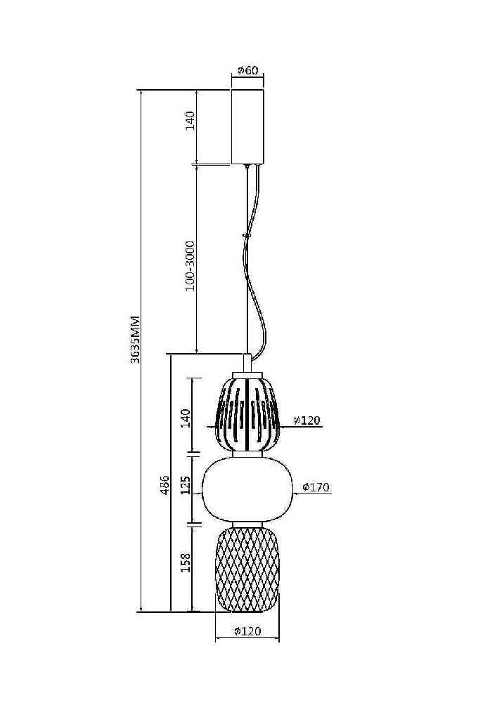 Для лампы необходима W и цоколем . Лампы приобретаются отдельно. Габариты изделия: высота – 3635 мм, диаметр – 170 мм.