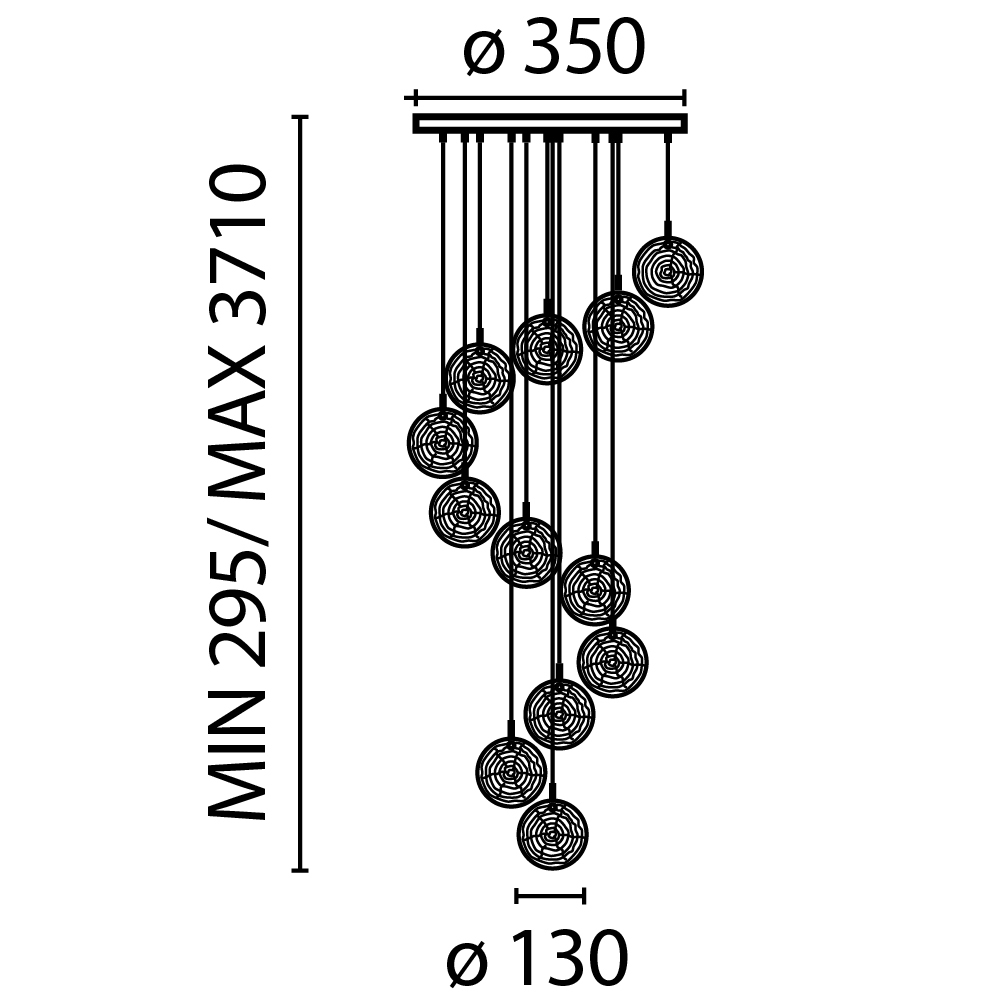 Для лампы необходима 12 W и цоколем . Лампы приобретаются отдельно. Габариты изделия: высота – 3710 мм