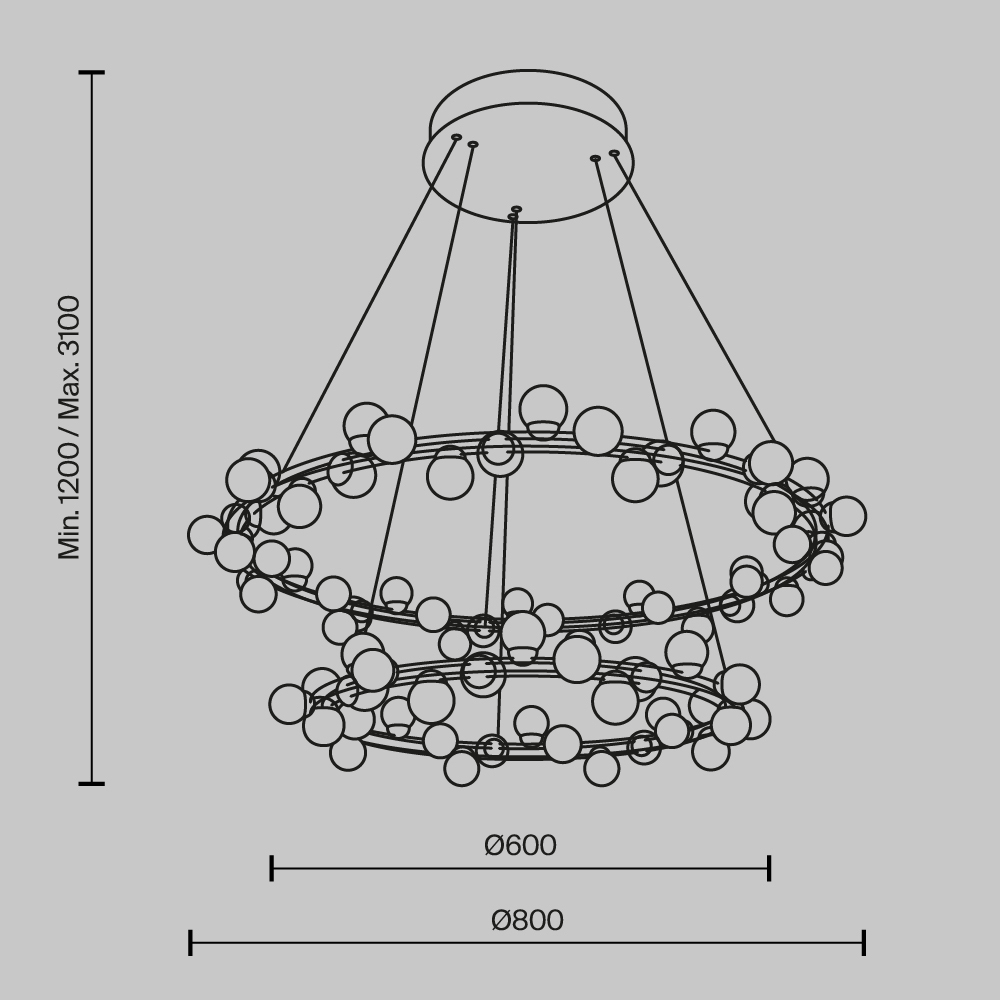 Для лампы необходима W и цоколем . Лампы приобретаются отдельно. Габариты изделия: высота – 3100 мм, диаметр – 800 мм.