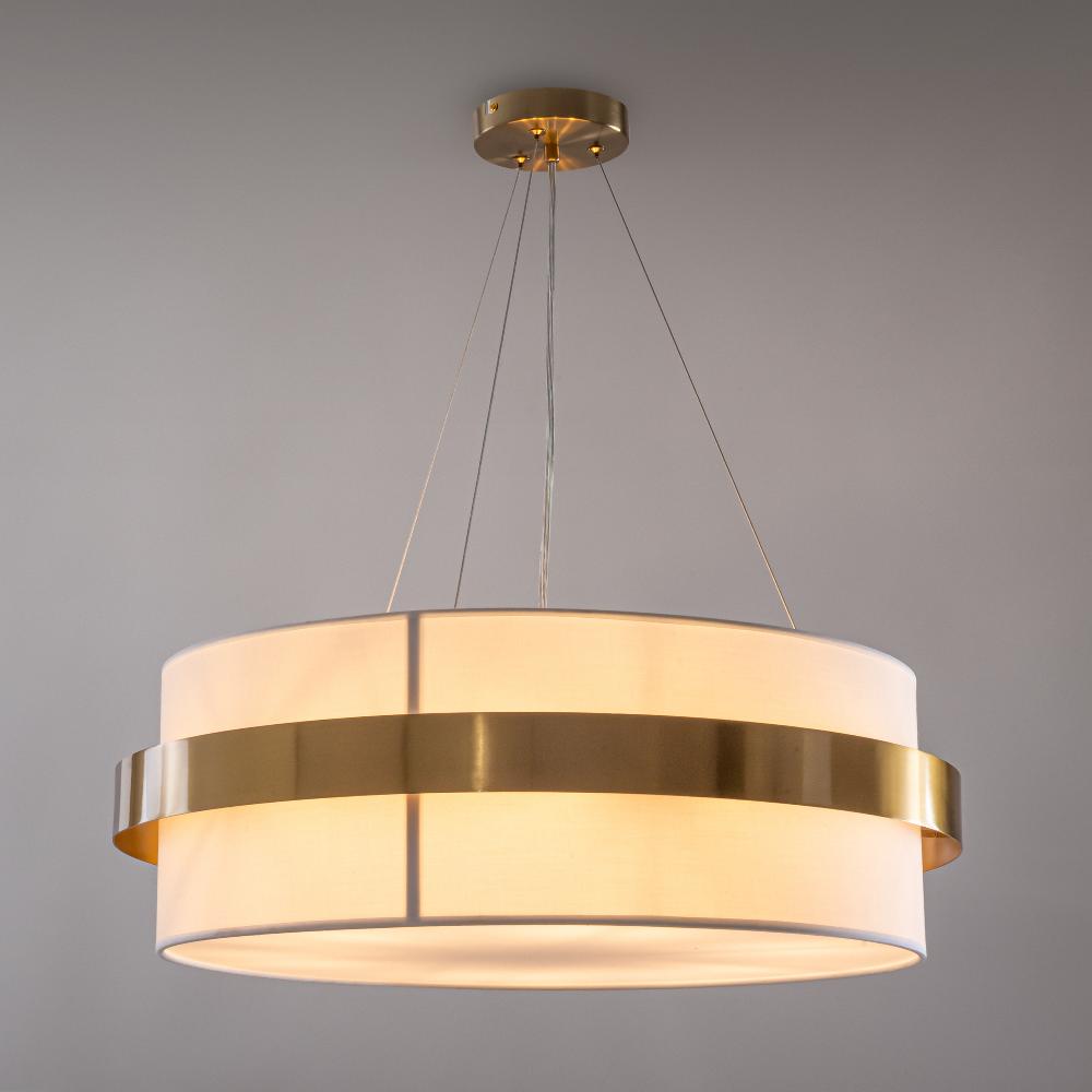 Подвесной светильник Freya FR5367PL-06BS от бренда из коллекции Modern ) подходит для установки в . Лампа из основы - и плафонами из ткани в форме цилиндра - белого цвета.