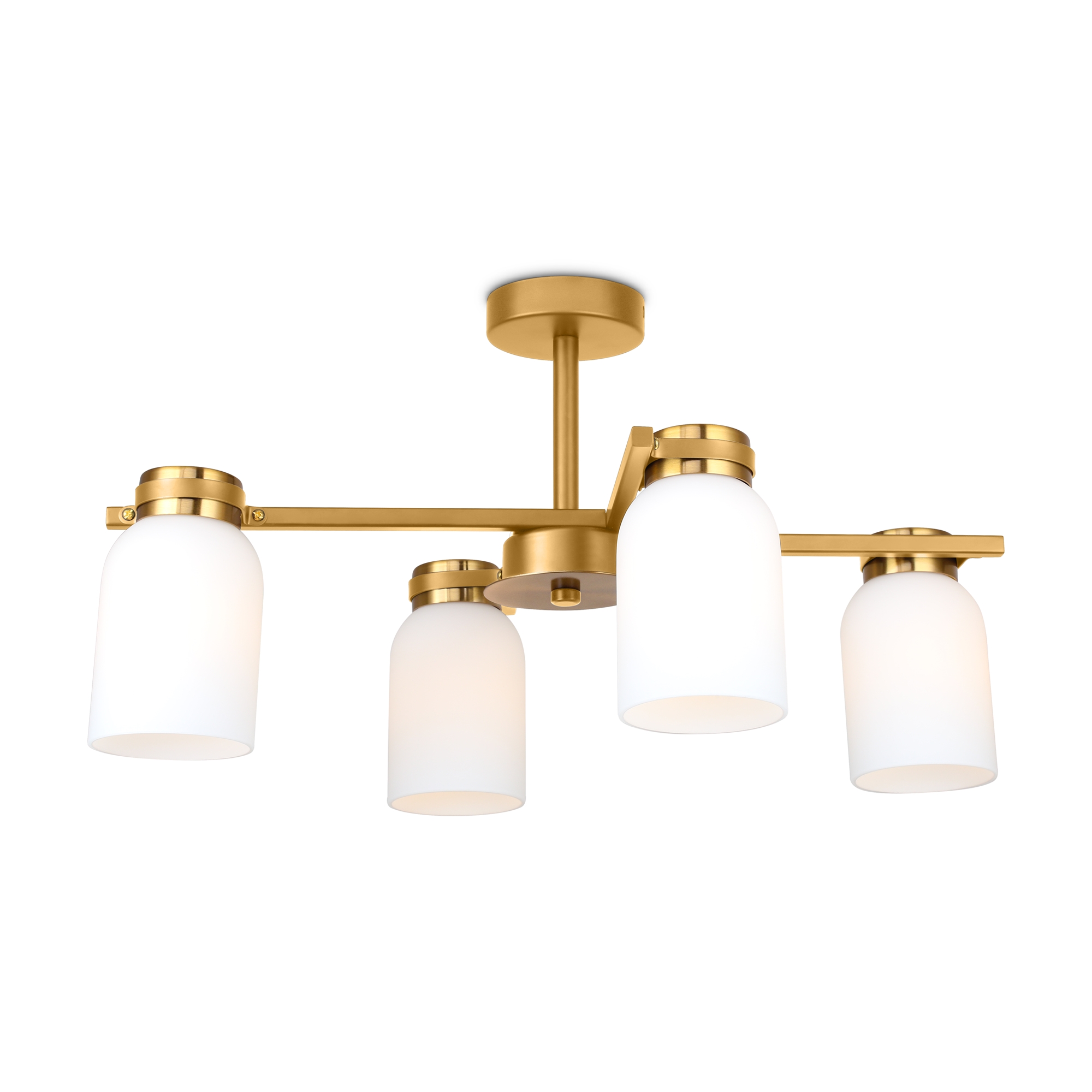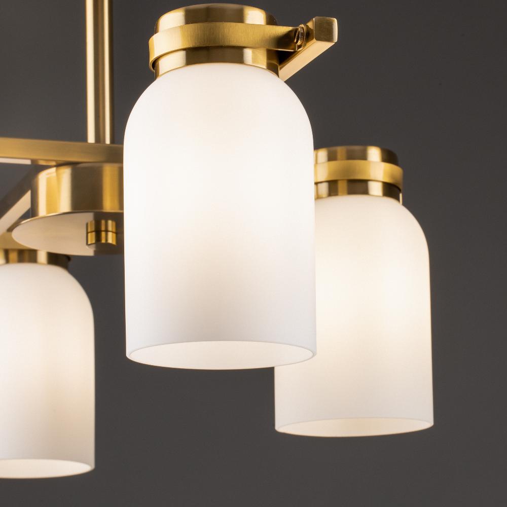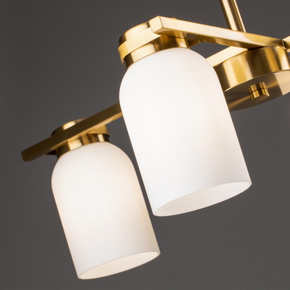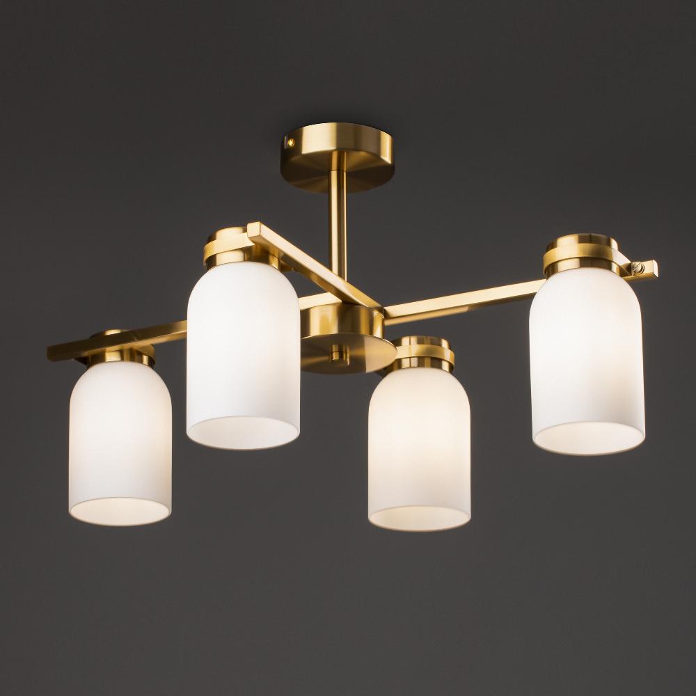 Подвесной светильник Freya FR5446PL-04BS1 от бренда из коллекции Modern ) подходит для установки в . Лампа из основы - и плафонами из стекла в форме цилиндра - белого цвета.