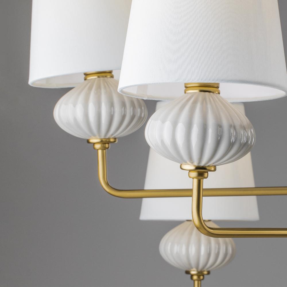 Подвесной светильник Freya FR2029PL-08BS от бренда из коллекции Classic ) подходит для установки в . Лампа из основы - и плафонами из ткани в форме - белого цвета.