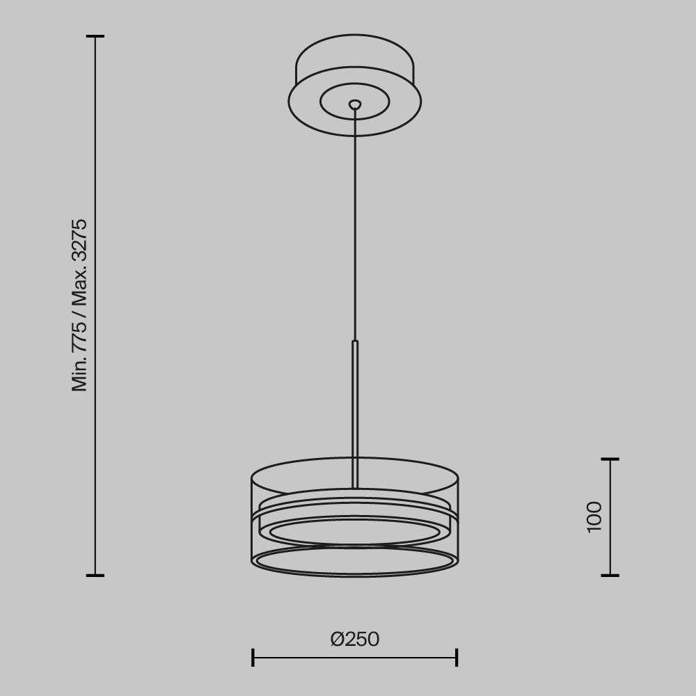 Для лампы необходима W и цоколем . Лампы приобретаются отдельно. Габариты изделия: высота – 3275 мм, диаметр – 250 мм.