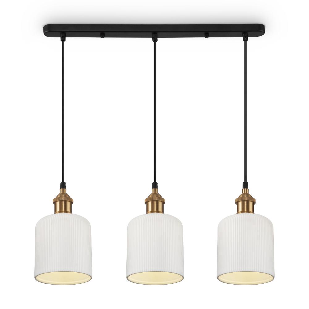 Подвесной светильник Freya FR9001PL-03GB от бренда из коллекции Loft ) подходит для установки в . Лампа из основы - и плафонами из керамики в форме цилиндра - белого цвета.