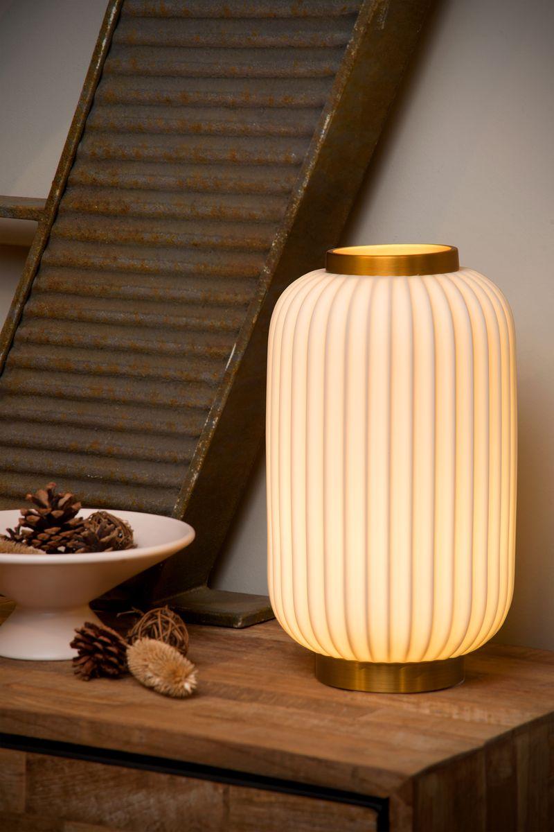 Настольная лампа Lucide Gosse 13535/34/31 от Китайского бренда Lucide из коллекции Gosse ) подходит для установки на стол в гостиной в ретро стиле. Лампа из металлической основы - залотого цвета и плафонами из керамики в форме овала - белого цвета.
