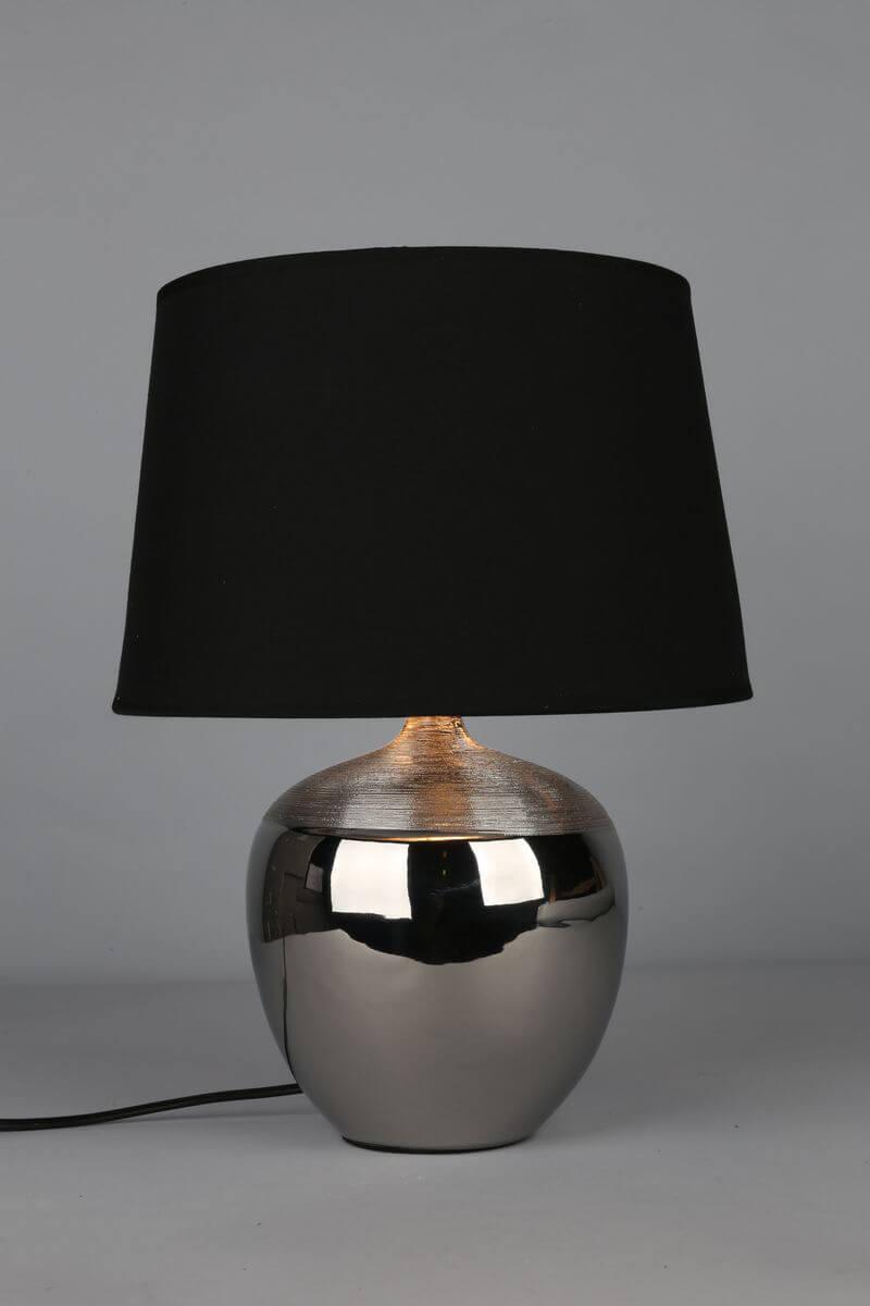 Настольная лампа Omnilux OML-82504-01 от Китайского бренда Omnilux из коллекции OML-8250 ) подходит для установки на стол в прихожей в стиле модерн. Лампа из керамической основы - серебрянного цвета и плафонами из ткани в форме конуса - черного цвета.