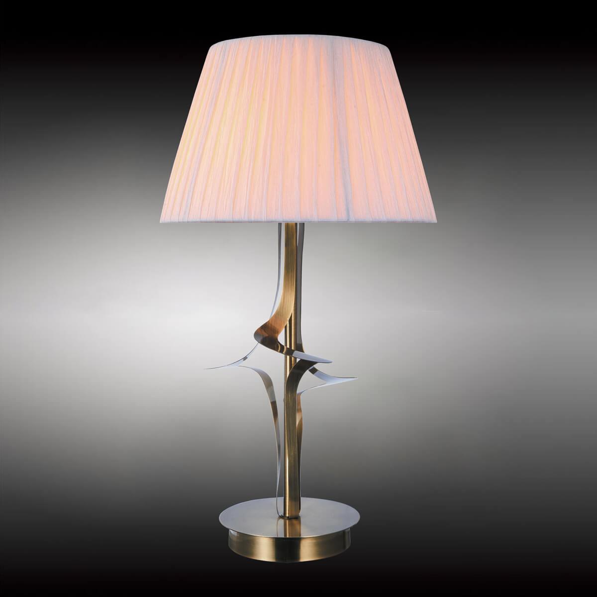 Настольная лампа Omnilux Grottole OML-63604-01 от Китайского бренда Omnilux из коллекции Grottole ) подходит для установки на стол в спальни в классиком стиле. Лампа из металлической основы - бронзового цвета и плафонами из ткани в форме конуса - белого цвета.