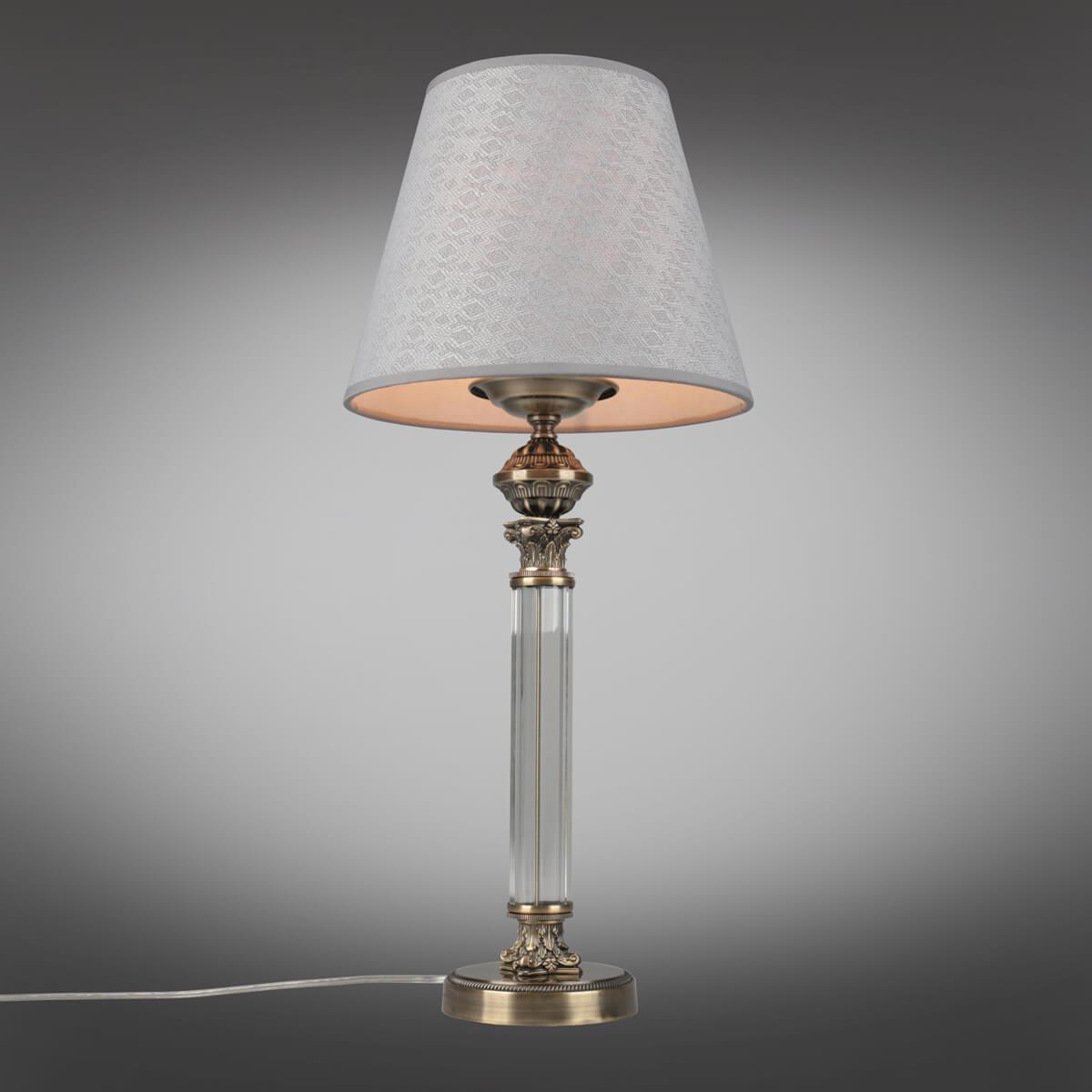 Настольная лампа Omnilux Rivoli OML-64214-01 от Китайского бренда Omnilux из коллекции Rivoli ) подходит для установки на стол в гостиной в классиком стиле. Лампа из металлической основы - бронзового цвета и плафонами из ткани в форме конуса - серого цвета.
