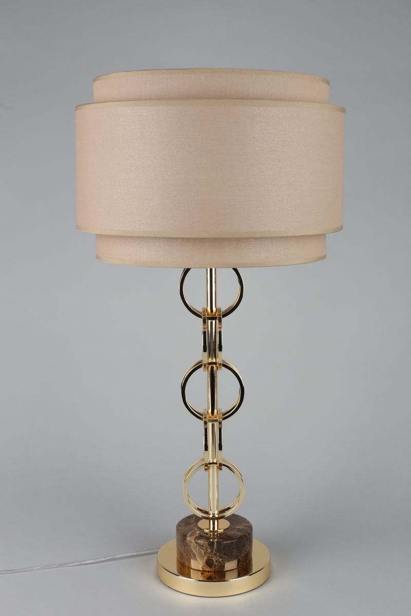 Настольная лампа Aployt Karolina APL.741.04.01 от бренда Aployt из коллекции Karolina ) подходит для установки на стол в гостиной в стиле Арт-деко. Лампа из металлической основы - залотого цвета и плафонами из ткани в форме цилиндра - бежевого цвета.