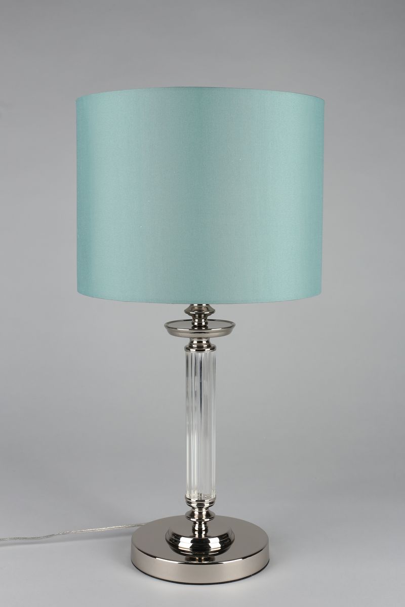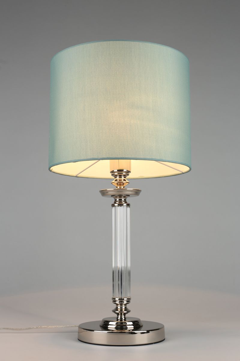 Настольная лампа Aployt Nikolet APL.714.04.01 от бренда Aployt из коллекции Nikolet ) подходит для установки на стол в спальни в стиле модерн. Лампа из металлической основы - цвет хрома и плафонами из ткани в форме цилиндра - бирюзового цвета.