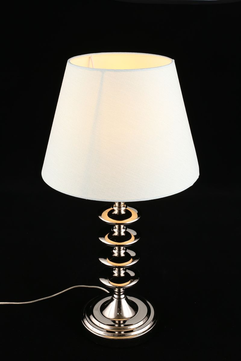 Настольная лампа Aployt Perla APL.731.04.01 от бренда Aployt из коллекции Perla ) подходит для установки на стол в спальни в стиле модерн. Лампа из металлической основы - цвет хрома и плафонами из ткани в форме конуса - голобого цвета.