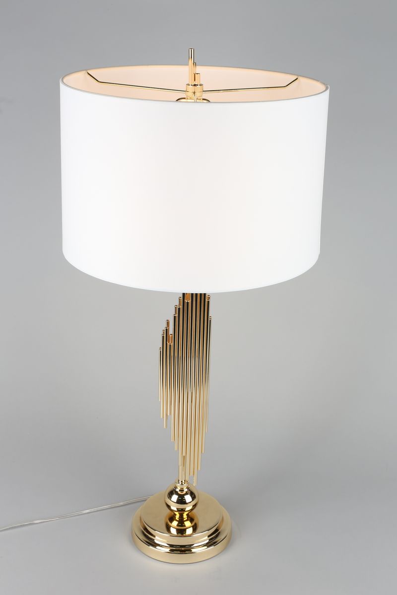 Настольная лампа Aployt Sharlota APL.738.04.01 от бренда Aployt из коллекции Sharlota ) подходит для установки на стол в гостиной в стиле Арт-деко. Лампа из металлической основы - залотого цвета и плафонами из ткани в форме цилиндра - белого цвета.