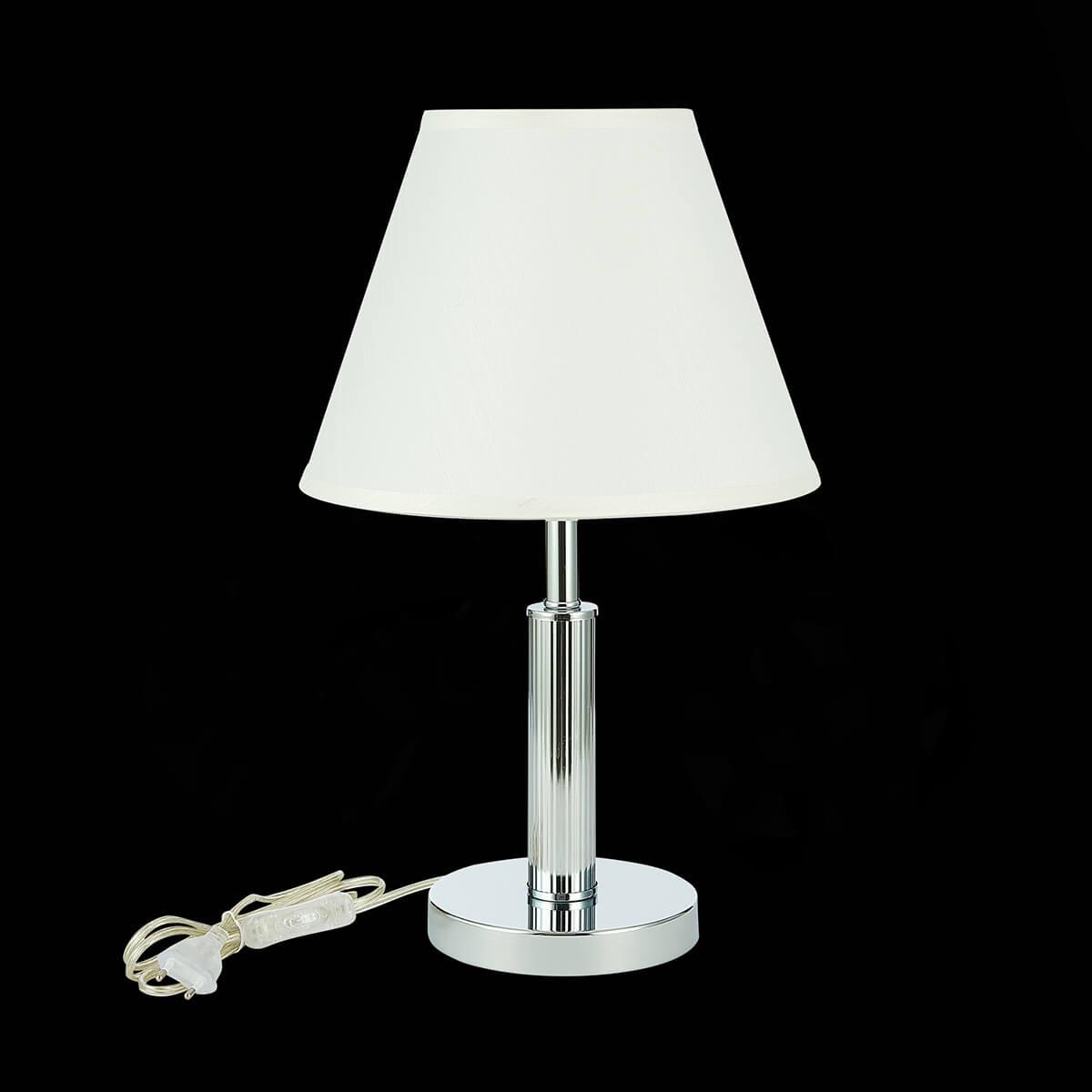 Настольная лампа Evoluce Monza SLE111304-01 от Китайского бренда из коллекции Monza ) подходит для установки на стол в спальни в современном стиле. Лампа из металлической основы - цвет хрома и плафонами из ткани в форме - белого цвета.