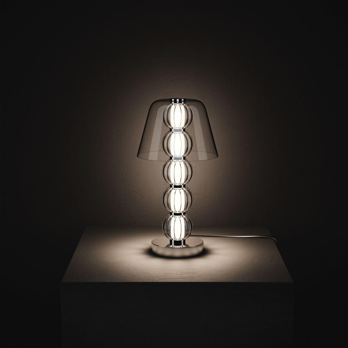 Настольная лампа Maytoni Amulet MOD555TL-L9CH5K от Китайского бренда из коллекции Amulet ) подходит для установки на стол в спальни в стиле модерн. Лампа из металлической основы - цвет хрома и плафонами из стекла в форме - прозрачного цвета.