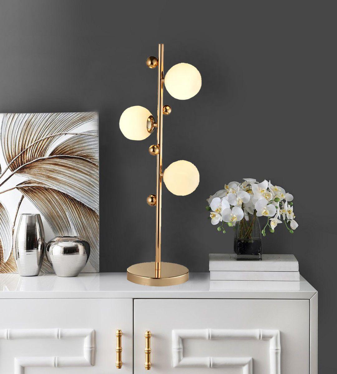 Настольная лампа Milosh Tendence 0699TL-3GD от Китайского бренда из коллекции 0699 ) подходит для установки на стол в гостиной в современном стиле. Лампа из металлической основы - и плафонами из стекла в форме - белого цвета.