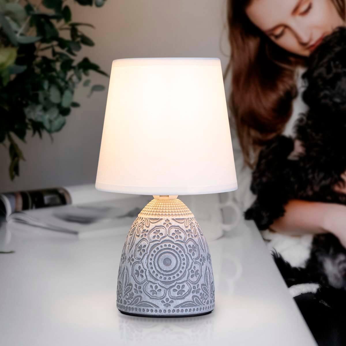 Настольная лампа Rivoli Debora D7045-502 Б0053469 от Китайского бренда из коллекции Debora ) подходит для установки на стол в гостиной в стиле модерн. Лампа из керамической основы - серого цвета и плафонами из ткани в форме - белого цвета.