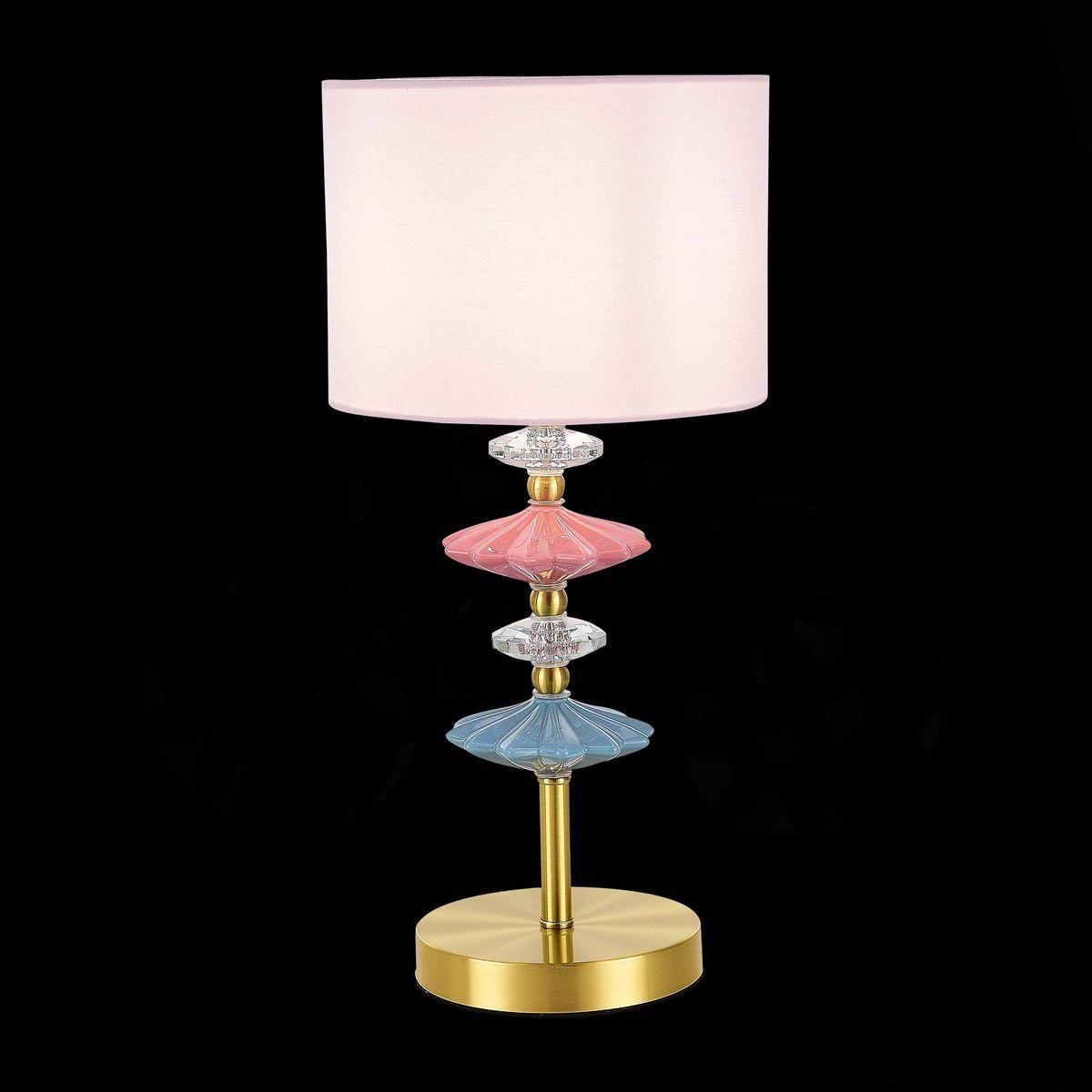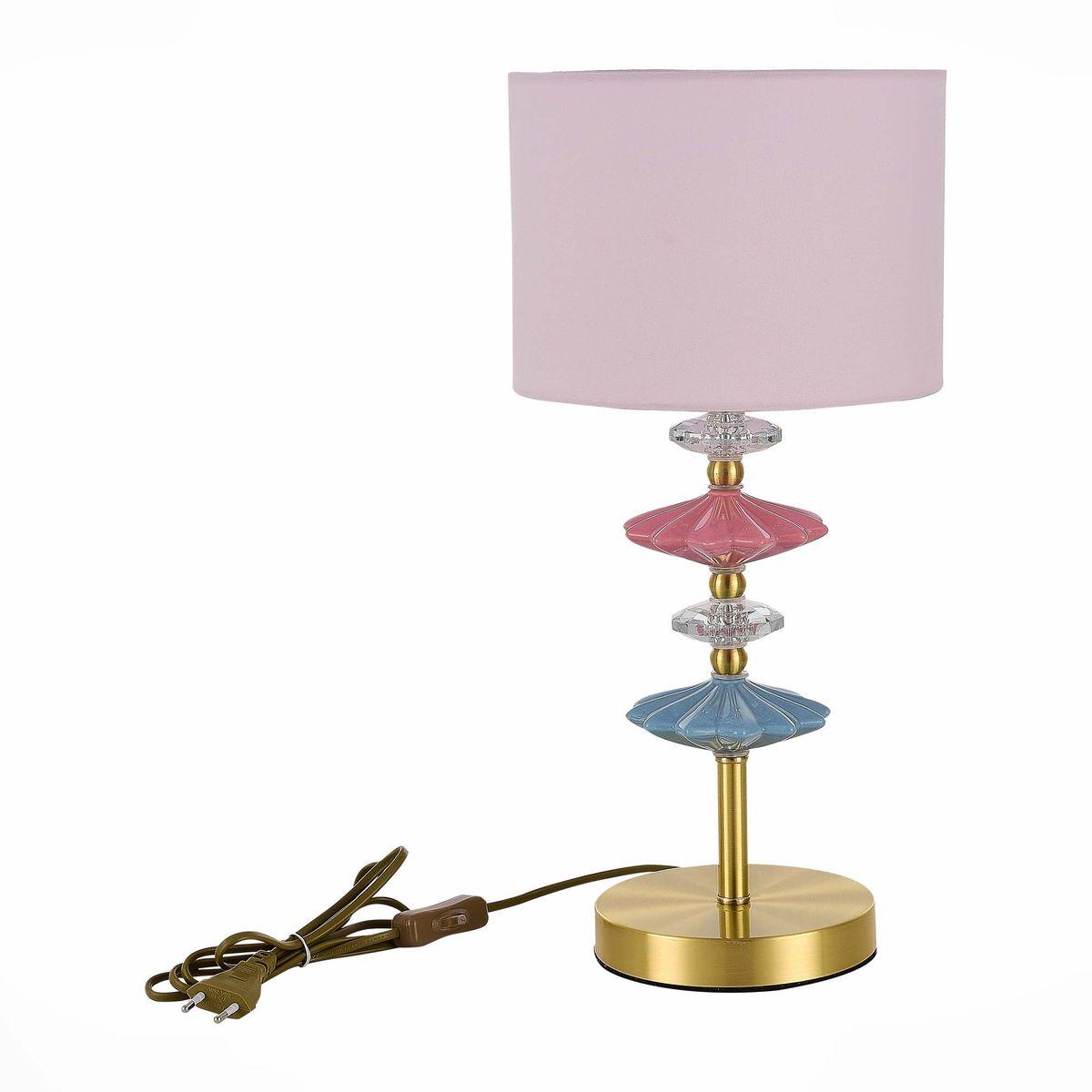 Настольная лампа Evoluce Attic SLE1117-204-01 от бренда из коллекции ) подходит для установки на стол в гостиной в стиле модерн. Лампа из металлической основы - залотого цвета и плафонами из ткани в форме - розового цвета.