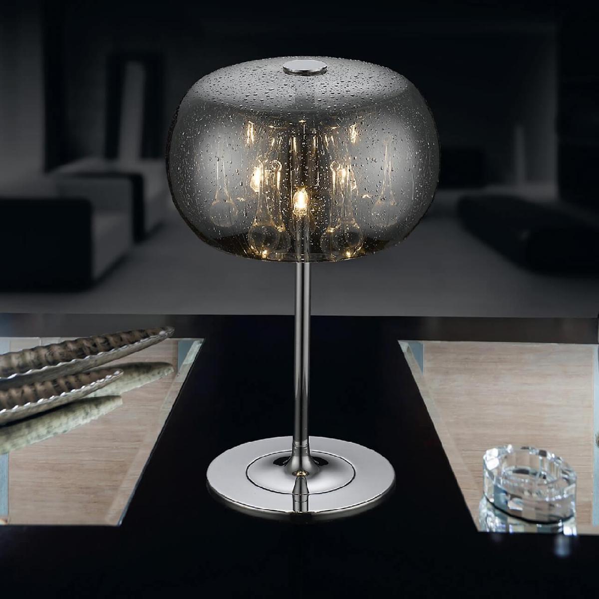 Настольная лампа Zumaline Rain T0076-03D-F4K9 от Польского бренда из коллекции Rain ) подходит для установки на стол в гостиной в стиле модерн. Лампа из металлической основы - цвет хрома и плафонами из стекла в форме - дымчатого цвета.