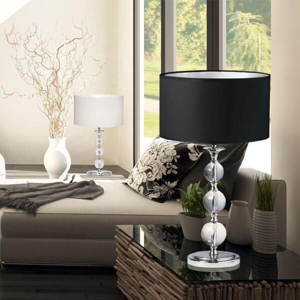 Настольная лампа Zumaline Rea RLT93163-1B от Польского бренда из коллекции Rea ) подходит для установки на стол в гостиной в стиле модерн. Лампа из металлической основы - цвет хрома и плафонами из ткани в форме - черного цвета.