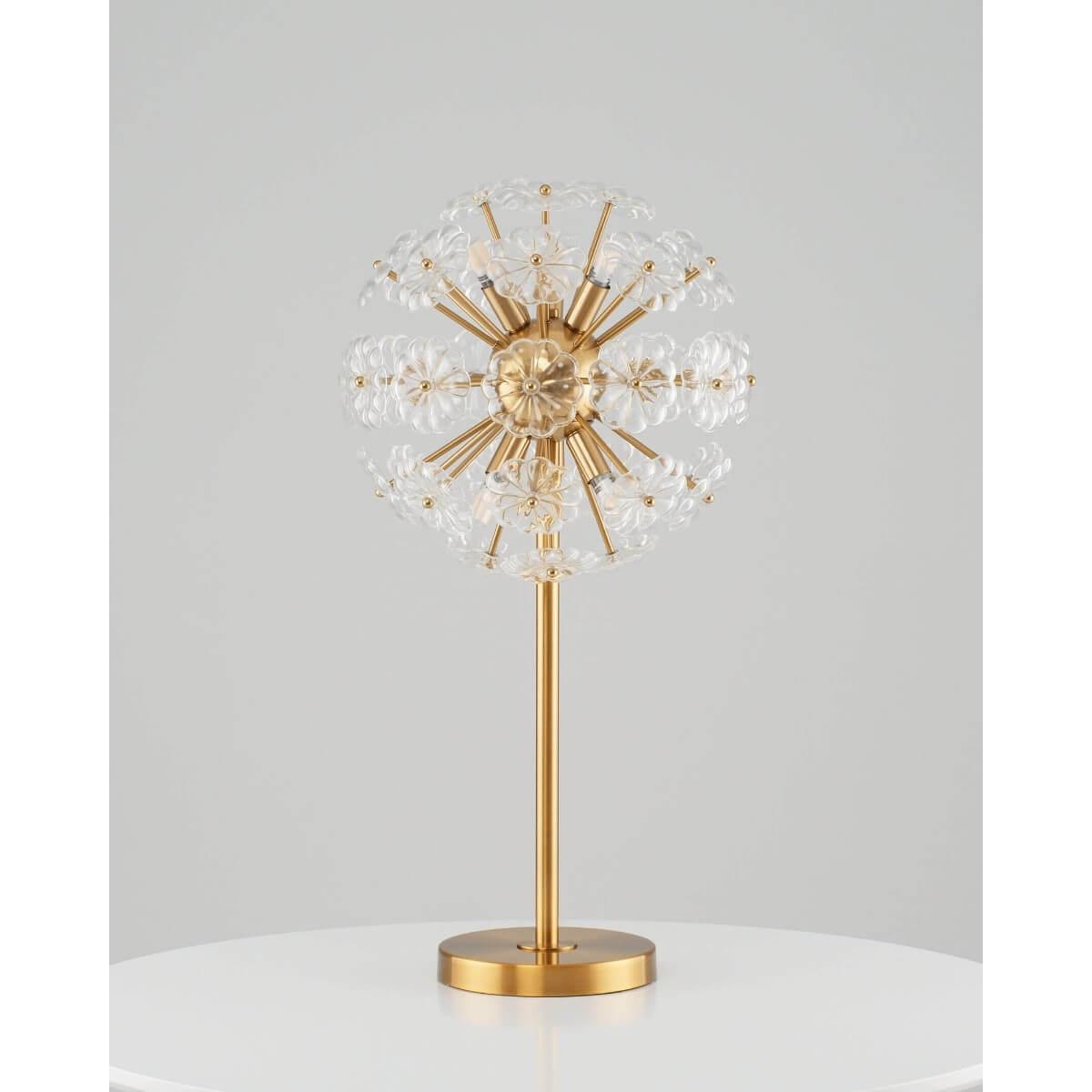 Настольная лампа Moderli Selectra V10231-6T от Китайского бренда из коллекции Selectra ) подходит для установки на стол в спальни в стиле модерн. Лампа из металлической основы - цвета латуни и плафонами из стекла в форме - прозрачного цвета.