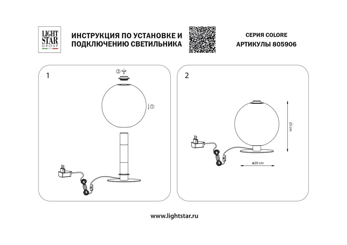 Для лампы необходима 1 светодиодная лампа 4 W и цоколем LED. Лампы приобретаются отдельно. Габариты изделия: высота – 230 мм, диаметр – 200 мм.